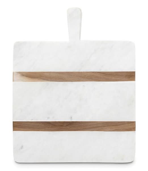 Entertain with style and flair.Crafted with a delightful mix of materials, the Providence Mable and Wood Square Cheese Board is the perfect companion for any gathering. With its rustic wooden handle and sleek, natural marble surface - this cheese board seamlessly blends classic charm with modern versatility.Indulge in a delightful spread of cheeses, fruits, and cured meats, artfully displayed on this captivating cheese board. The smooth marble not only provides an elegant backdrop but also keeps your delicacies cool, ensuring a deliciously enticing experience for your guests.Part of our Providence Collection.Perfect for displaying and serving a variety of treats.Easy to clean and maintain.Mix of marble and wood.Measures 10in. square.