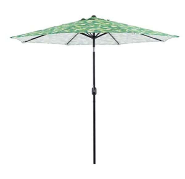 You'll have it made in the shade with our 9-foot Green Marconi Banana Leaf Crank and Tilt Patio Umbrella. Entertain guests in style with this aluminum patio umbrella that's just as much functional as it is a decorative piece. Designed with style in mind, the fabric blocks UV rays, keeping you and your guests completely comfortable. Plus, with 8 ribs, tilt and crank mechanism and a pole that fits most patio tables and umbrella stands, this umbrella offers excellent value while casting its shady pleasure.Features a stylish banana leaf design. Stands at 9ft tall. Weather-resistant construction. Umbrella base not included. Made from polyester. Color: Green