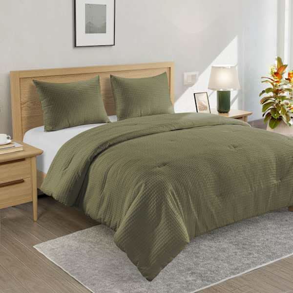 Crosby St. 2-Piece Olive Green Washed Cotton Waffle Comforter Set, Twin/Twin XL
