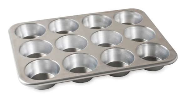Our 12-cup muffin pan is made of metal for superior heat conductivity and produces consistently evenly browned baked goods every time. This pan offers durability and will never rust. The rolled rims help prevent warping. Creativity meets a baking pan that's ready to create delicious confections.