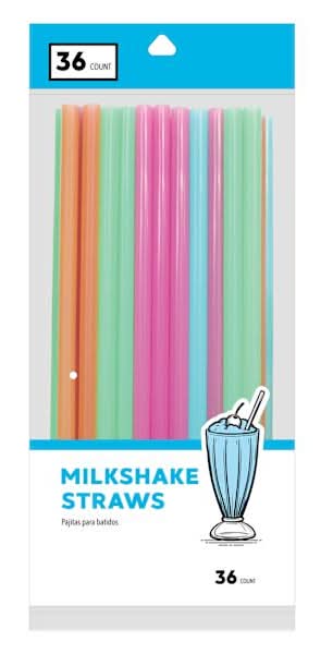 Give your milkshake a twist.Make your milkshake experience even more fun with our 36-Count Plastic Milkshake Straws. Designed with your enjoyment in mind, these straws are perfect for sipping your favorite cold beverages. These colorful straws are not only a great addition to your milkshake, but also perfect for parties, barbecues, and any special occasion. They add a playful touch to any drink, making every sip a delightful and enjoyable experience. 36-Count pack for all your milkshake cravings. Bright and colorful perfect for any occasion. Ideal for milkshakes, smoothies, and other cold drinks.