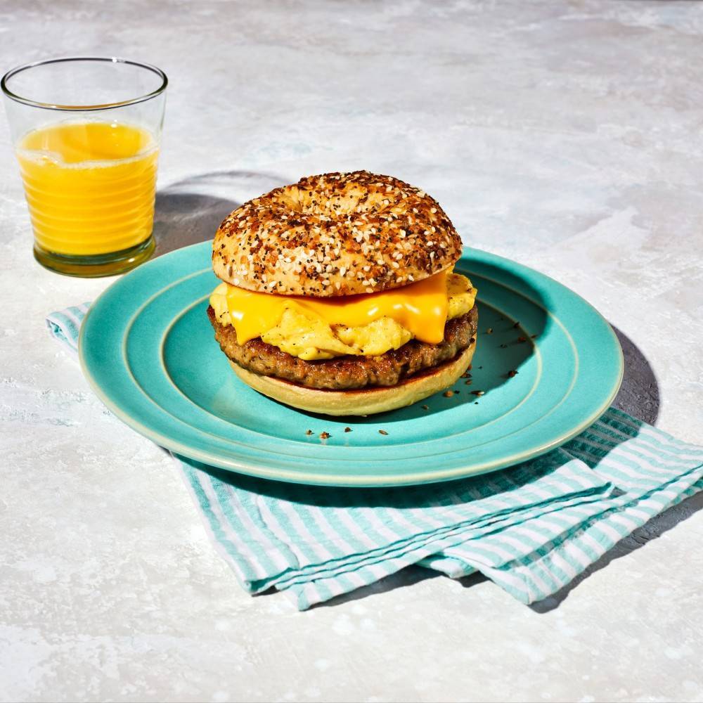 A plant-based delight! Featuring Impossible Sausage, fully cooked JUST Egg, and creamy vegan cheese on your choice of a plain or everything Challah bagel. Flavorful, satisfying, and completely vegan.