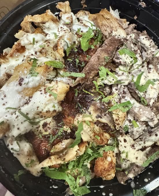 platters are served with rice, pickles, green salad & pita