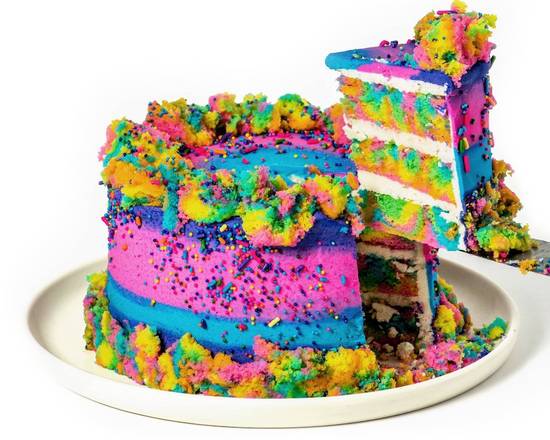 This cake will take your birthday celebration to the next level. Made with 3 layers of Melissa's signature Electric Vanilla Tie-Dye Cake, loads of vanilla buttercream icing, and tie-dye cake crumble topping. It's everything you know and love about Baked by Melissa, packed into a cake! Serving Suggestion: Serves 8 - 12 people.