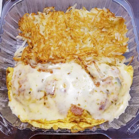 Ham, bell pepper, onions, and cheese.