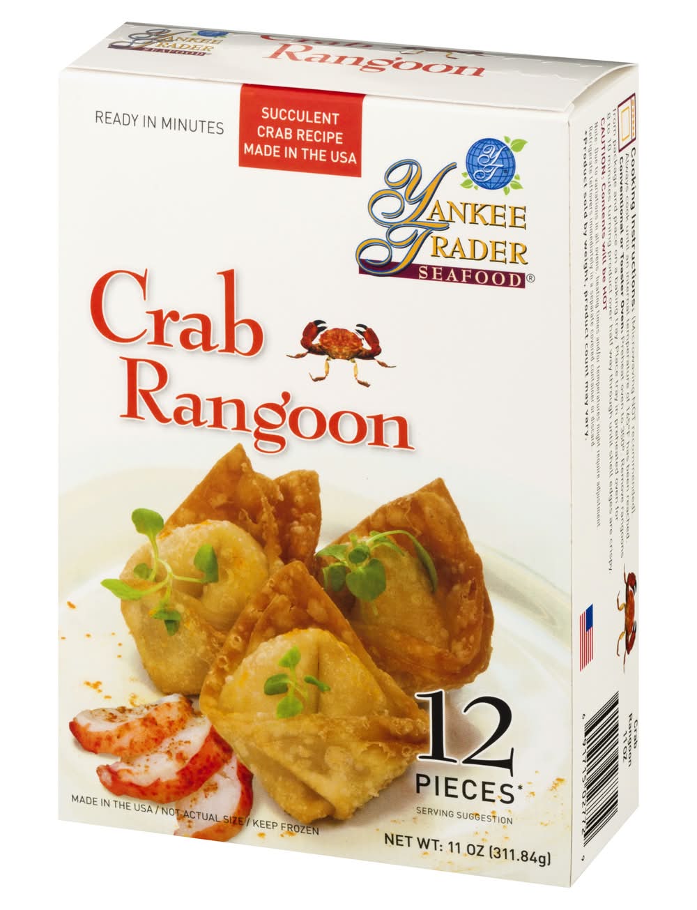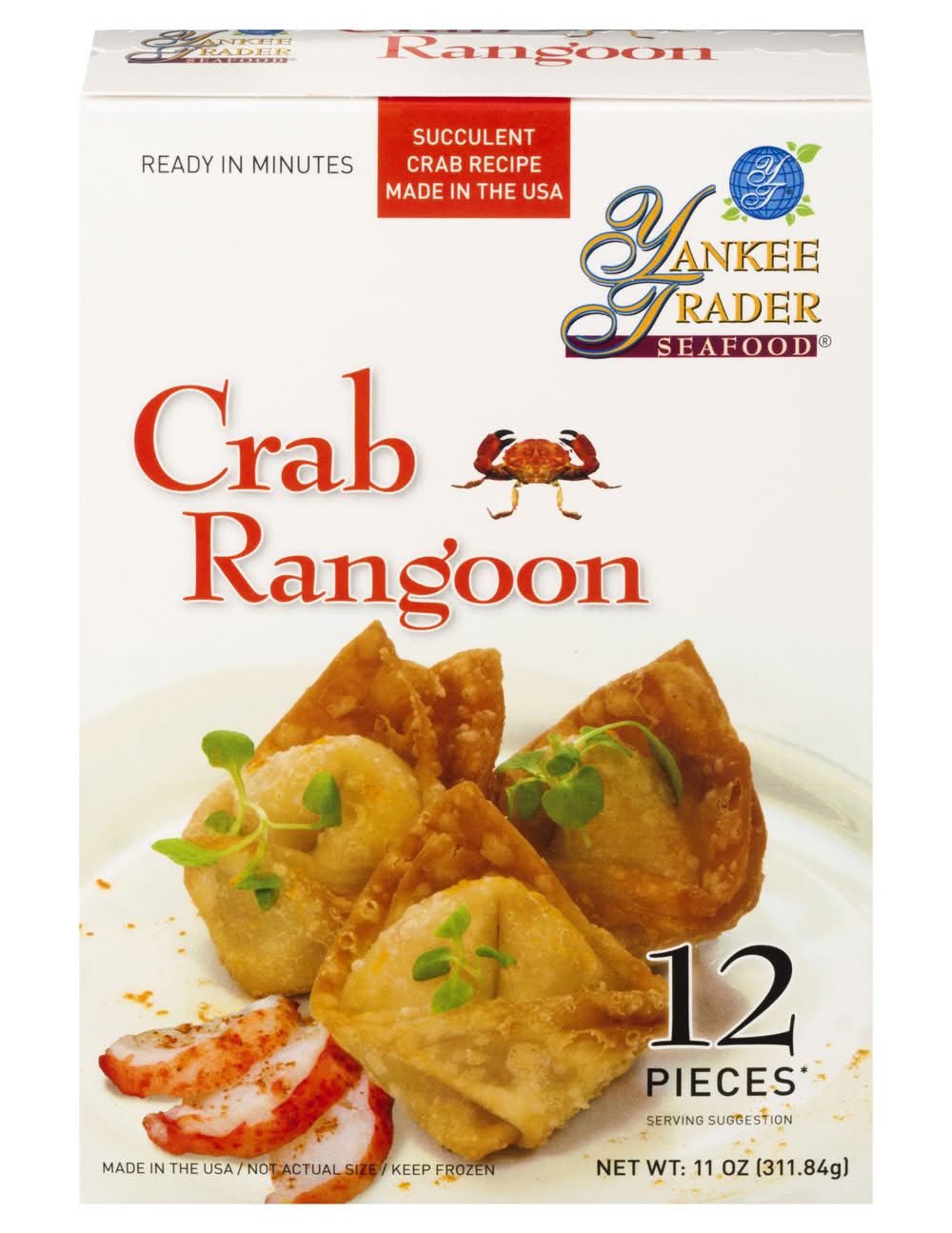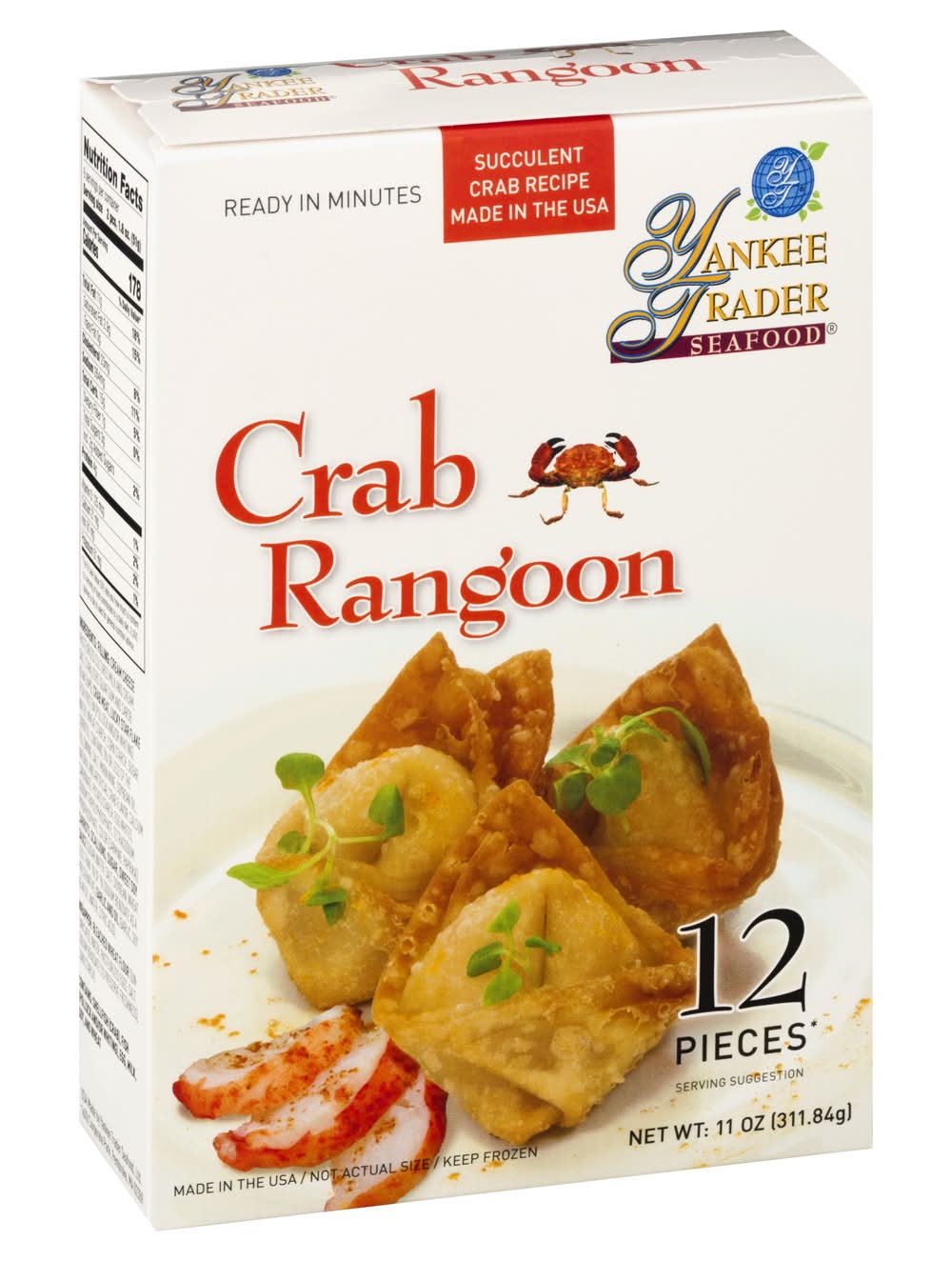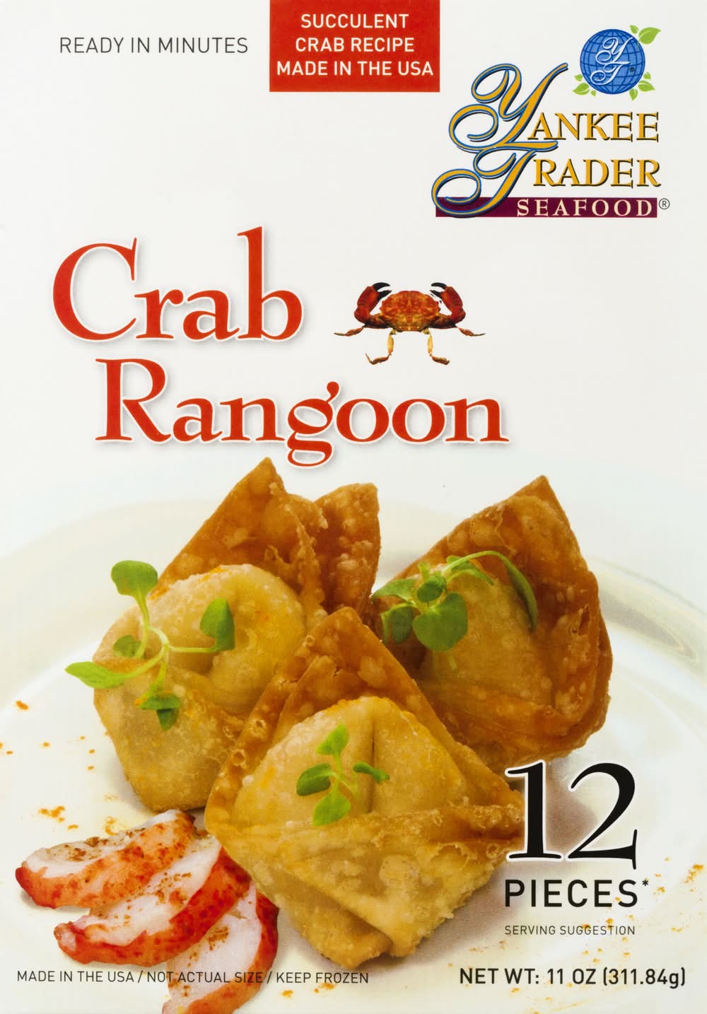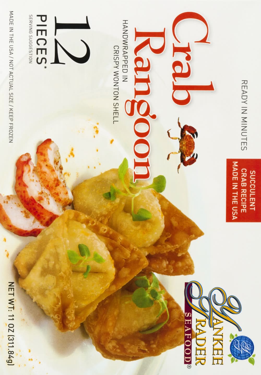 Ingredients: Filling: Cream Cheese (Pasteurized Cultured Milk and Cream, Salt, Stablizers [Guar Gum and Carob Bean Gum]), Crab Meat, Lucky Star Flake (Fish Protein [Pollock and/or Whiting], Water, Wheat Starch, Corn Starch, Sugar, Sorbitol, Contains 2% or Less of the Following; Salt, Mirin Wine, Soybean Oil, Natural and Artificial Crab Flavor, Calcium Carbonate, Potato Starch, Egg Whites, Sodium Tripolyphosphate, Tetrasodium Pyrophosphate, Color [Carmine, Paprika)] Carrots, Scallions, Sugar, Sweet Soy Sauce (Sugar, Water, Salt, Soybean, Wheat, Less than 1% of 1% Sodium Benzoate as a Preservative), Garlic and Oil (Garlic, Soy Bean Oil, Water, Citric Acid). Wrapper: Bleached Wheat Flour ([Unenriched], Water, Pasteurized Eggs, Salt, Sodium Benzoate [to Preserve Freshness], Corn Starch) Contains: Crustacean Shellfish, Fish, Milk, Wheat, Soybeans, Eggs