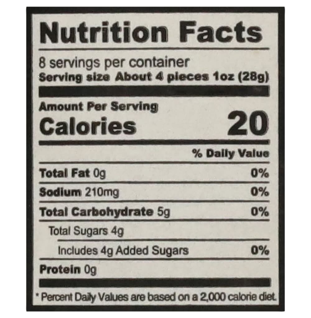 Ingredients: Cucumber, Water, Cane Sugar, Apple Cider Vinegar, Distilled White Vinegar, Salt, Less than 2% of: Onions, Garlic, Dill