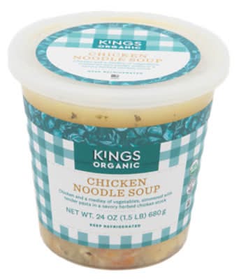 Ingredients: Water, Chicken (White Meat Chicken, Chicken Broth, Rice Starch, Salt), Pasta (Durum Wheat Flour, Eggs, Egg Whites, Niacin Ferrous Sulfate, Thiamine Mononitrate, Riboflavin, Folic Acid) Carrots, Onions, Celery, Contains 2% Or Less Of:, Chicken Base (Roasted Chicken Meat, Dried Whey, Chicken Fat, Sugar, Sea Salt Potato Starch, Natural Flavor, Carrot Powder, Chicken Broth. Turmeric), Chicken Fat, Organic Canola Oil, Garlic, Parsley, Acacia & Xanthan Gum, Turmeric, Nisin Preparation And Spices Contains: peanuts, tree nuts, sesame, milk, eggs, wheat, soy, fish and crustacean shellfish.
