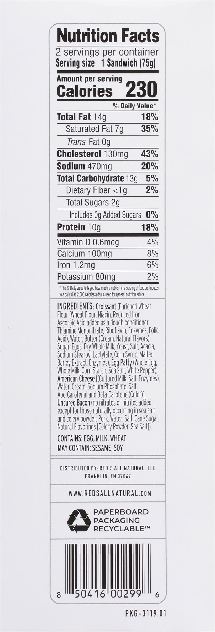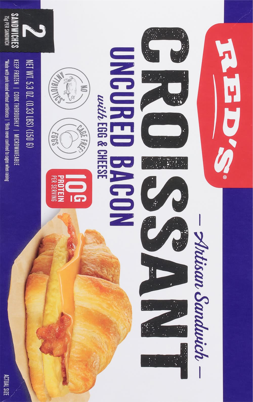 Red's Croissant Uncured Bacon With Egg & Cheese Artisan Sandwich (5.3 oz, 2 ct)
