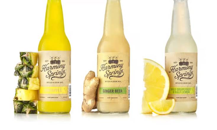 Harmony Springs uses water from a spring-fed artesian aquifer and is committed to using all-natural ingredients, fruit juices, and pure cane sugar to flavor their beverages, along with acceptable preservatives such as non-GMO-derived citric acid.