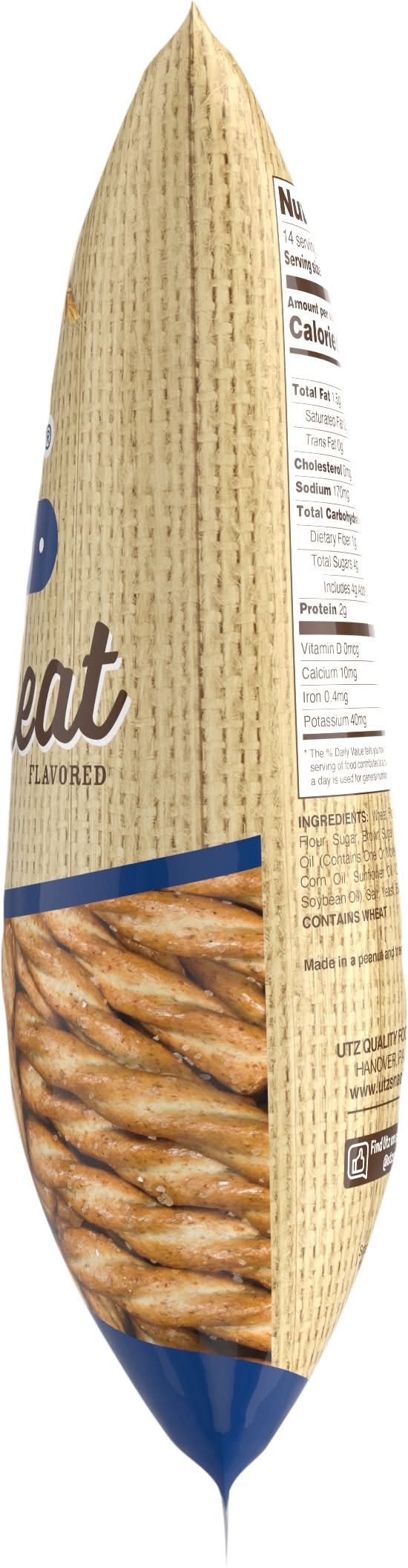 Made in a peanut and tree nut free facility. Try the Great Taste of UTZ Braided Honey Wheat Flavored Twists Pretzels: a delectable combination of sweet honey flavor and wheat in a braided twist shape. As with all UTZ products we guarantee its freshness and quality. UTZ pretzels, grab a bag today and enjoy! Freshness guaranteed. • Flavor: Honey wheat • Utz Quality Foods Inc, Hanover, PA 17331