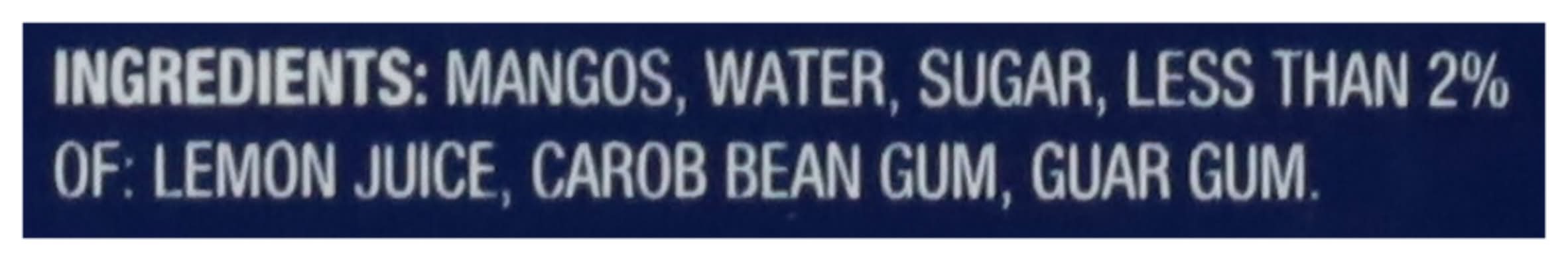 Ingredients: Mangos, Water, Sugar, Less than 2% of: Lemon Juice, Carob Bean Gum, Guar Gum