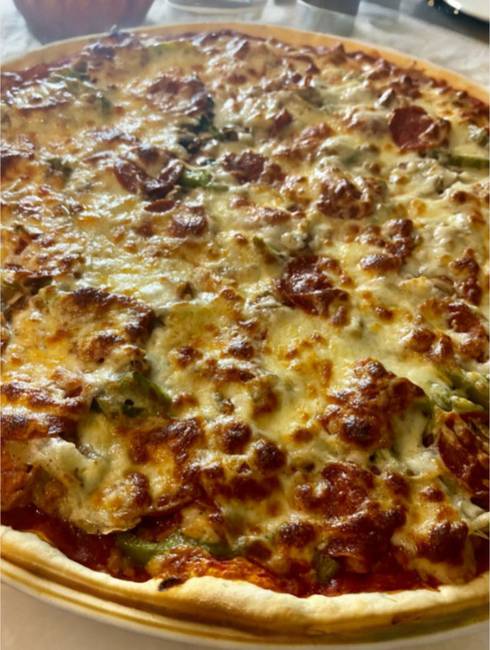 Fresh sausage, onions, green peppers, and mushrooms. Each one is made with our signature sauce and baked on our scratch-made dough with 100% real butter. You'll taste the difference!