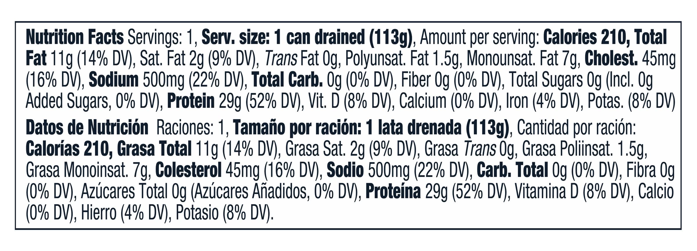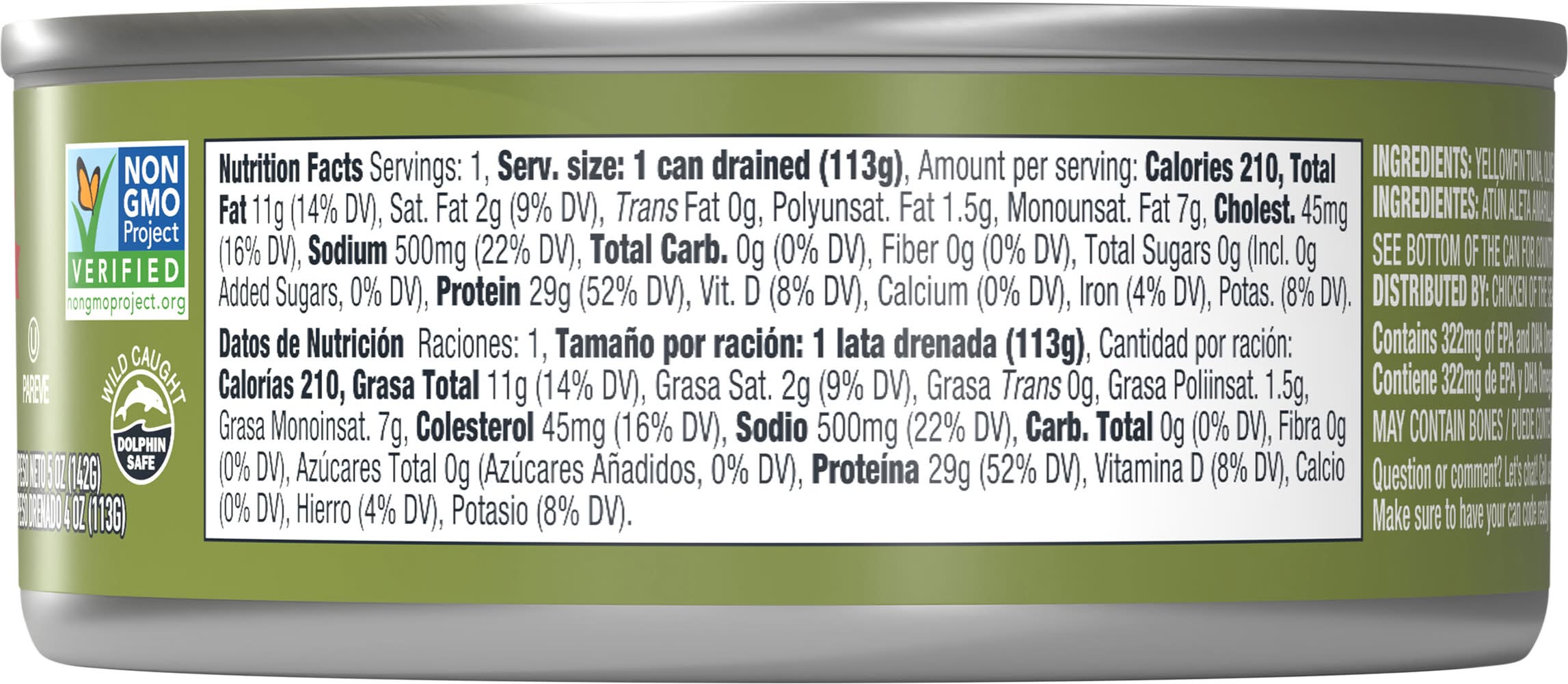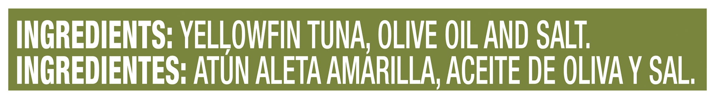 Ingredients: Yellowfin Tuna, Olive Oil and Salt Contains: Fish, Tuna