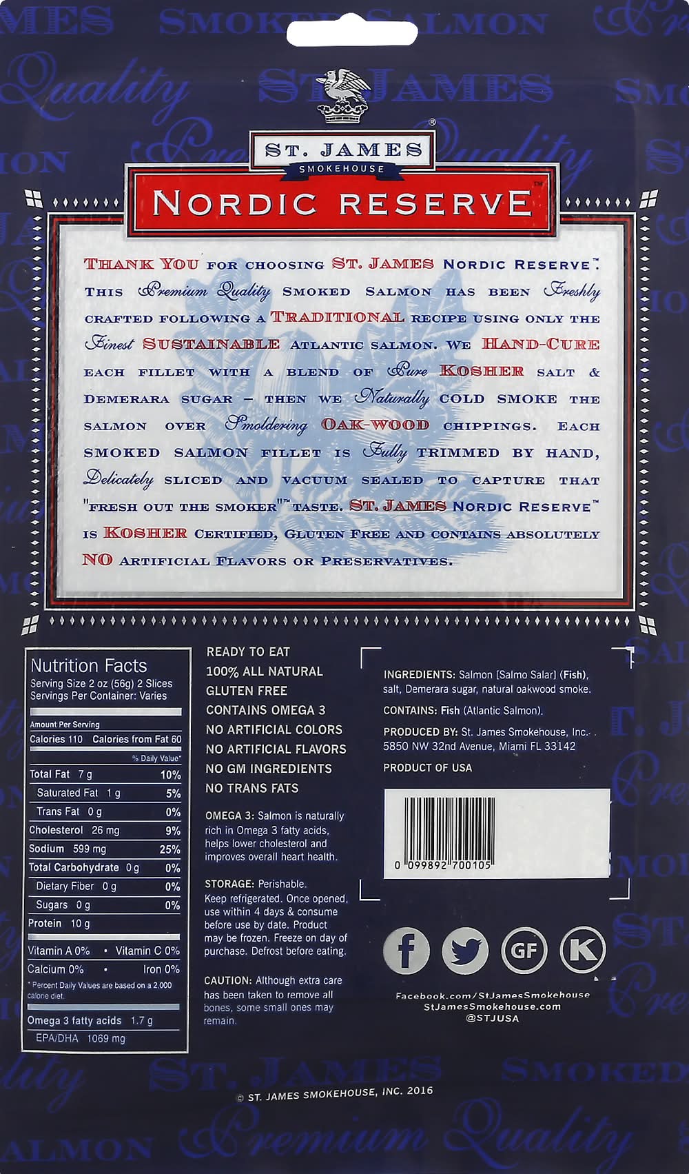 Salmon, Oak Smoked, Thinly Sliced St. James Smokehouse, Inc., 5850 NW 32nd Avenue,Miami,FL,33142
