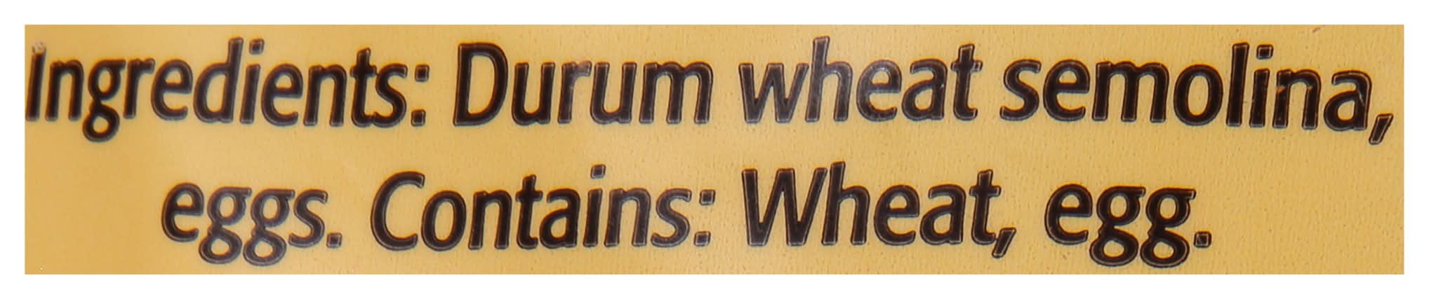 Ingredients: Durum Wheat Semolina, Eggs Contains: Wheat, Eggs