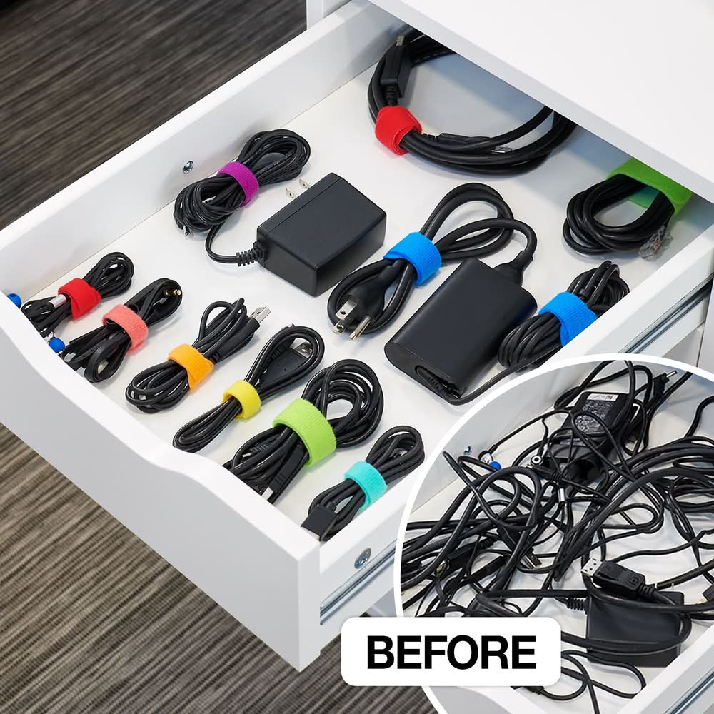 Our mouths water when we see a delicious plate of pasta. But we cry our eyes out when we see a drawer full of cable spaghetti. Quickly go from tangled to tidy with our Self-Gripping Cable Ties. They’re perfect for organizing your cords, cables, wires, and more. Color: Black
