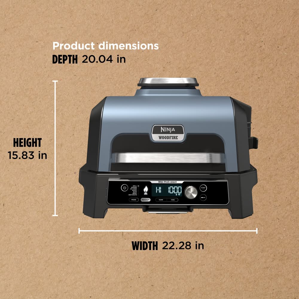 Ninja - Woodfire ProConnect Premium XL Outdoor 7-in-1 Grill & Smoker, App Enabled, Air Fryer, 2 Built-In Thermometers - Blue