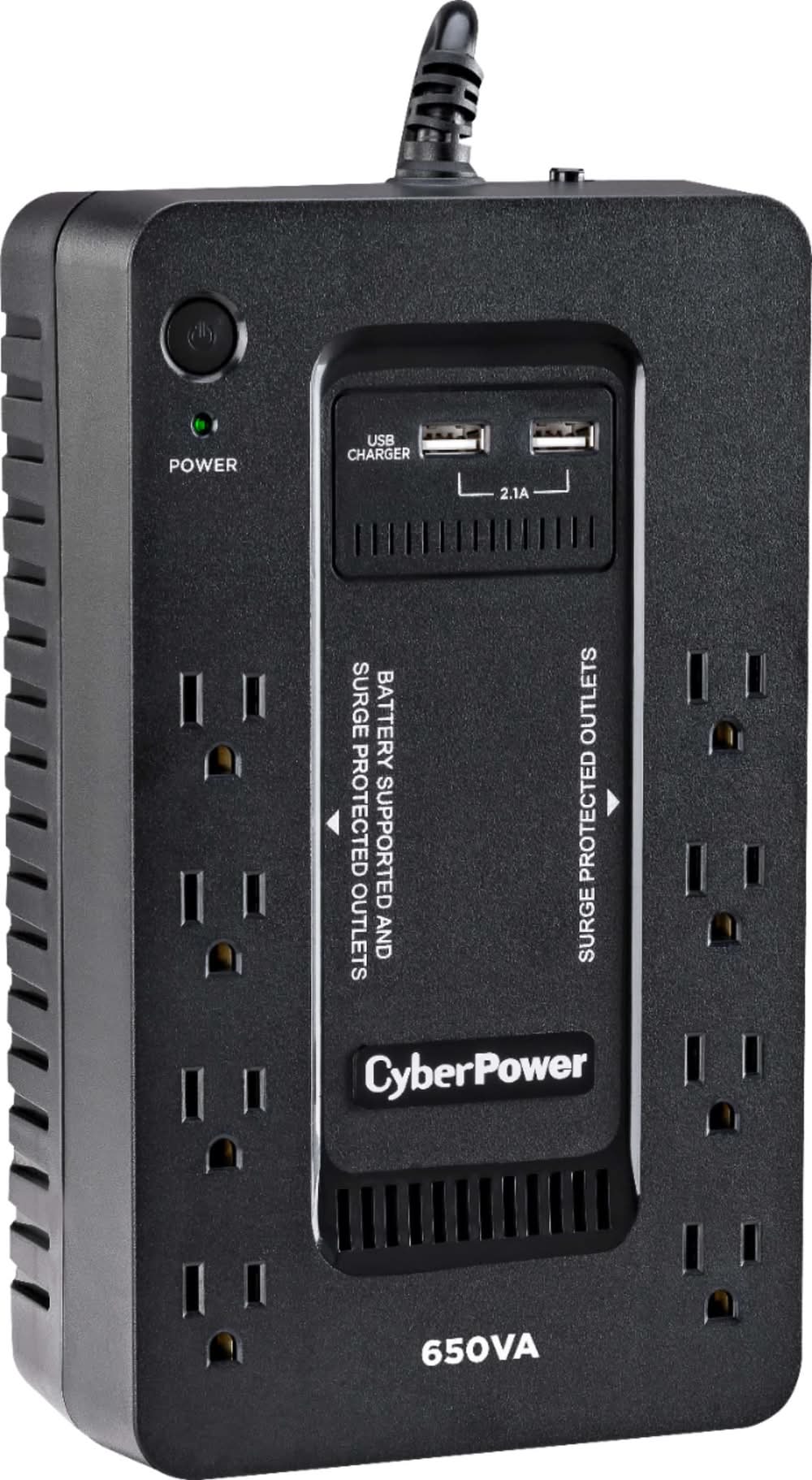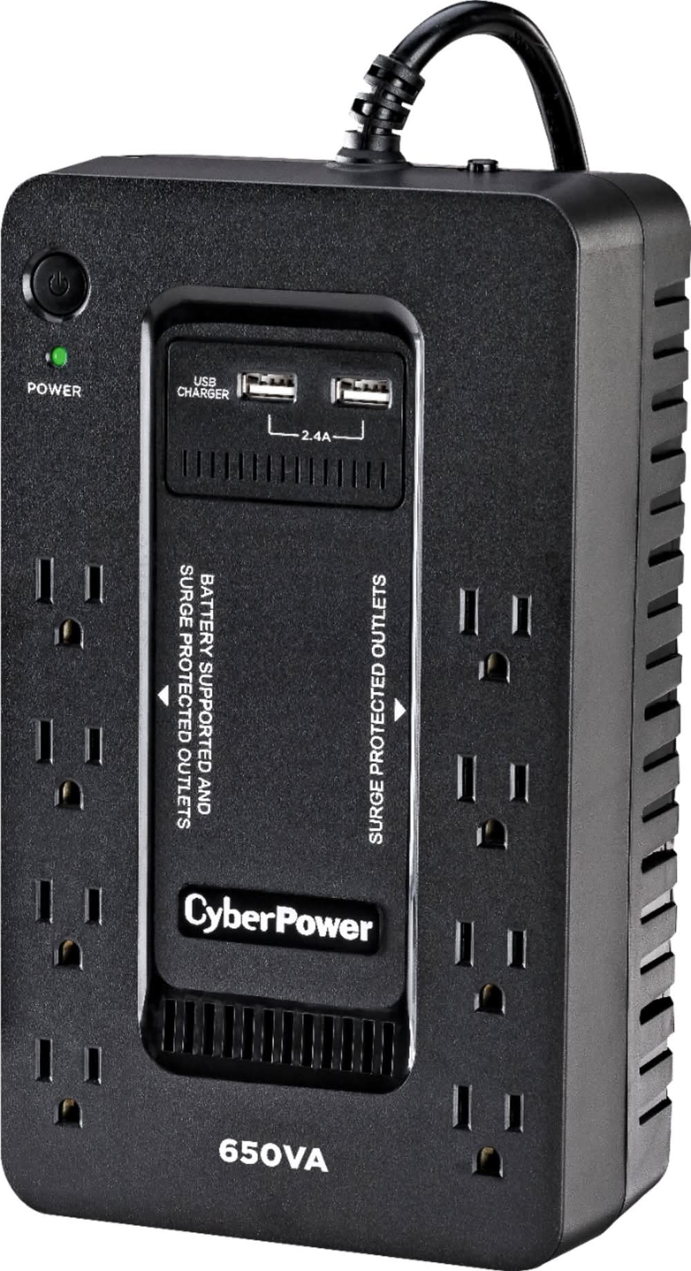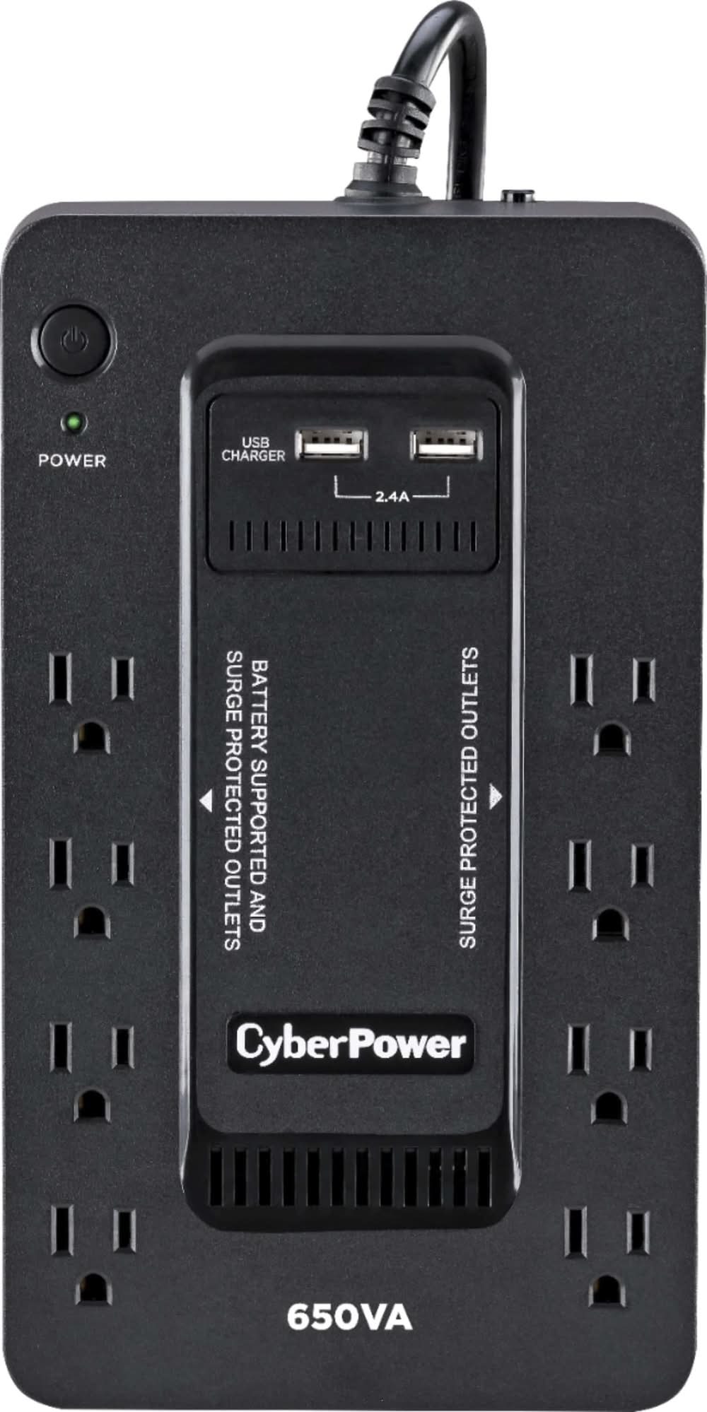 Protect the delicate components of your computer setup with this CyberPower Systems standby UPS system. This uninterruptible power supply adds a layer of defense against surges, spikes and sags, keeping circuits from overloading and electronics from burning out. Offering eight standard outlets and battery backup, this CyberPower Systems standby UPS system provides space for connecting your PC, printer, scanners and other devices to a reliable power supply. Color: Black
