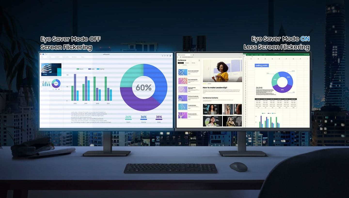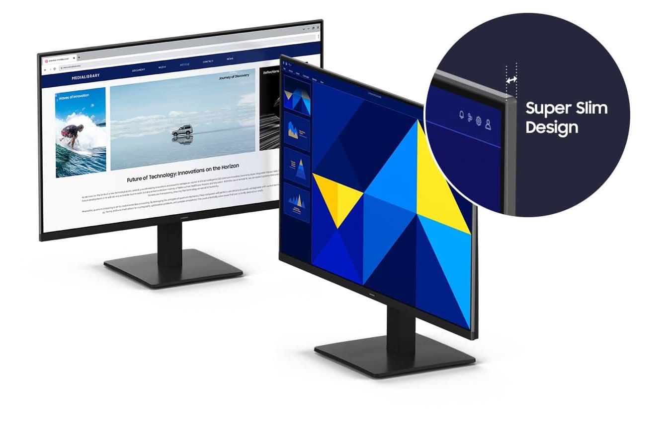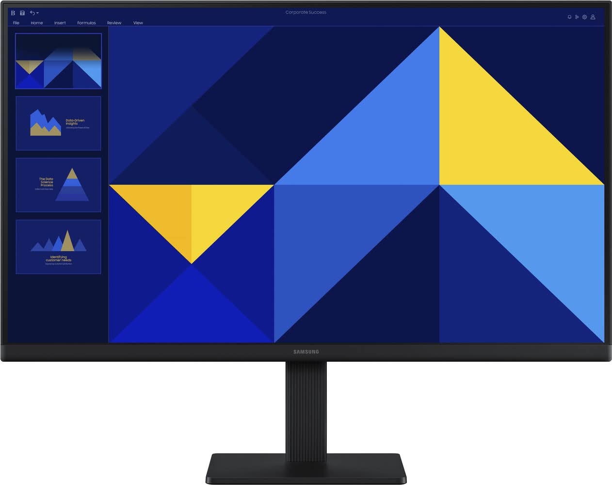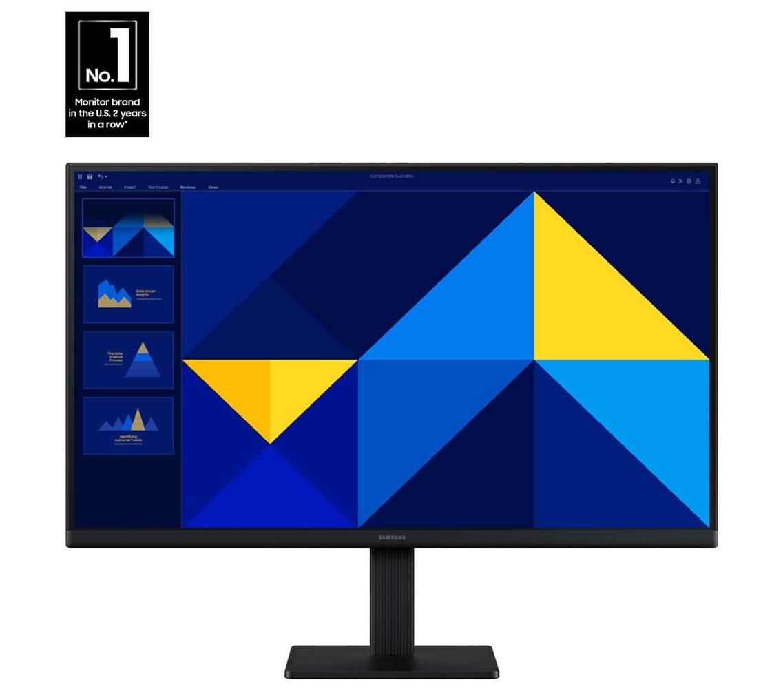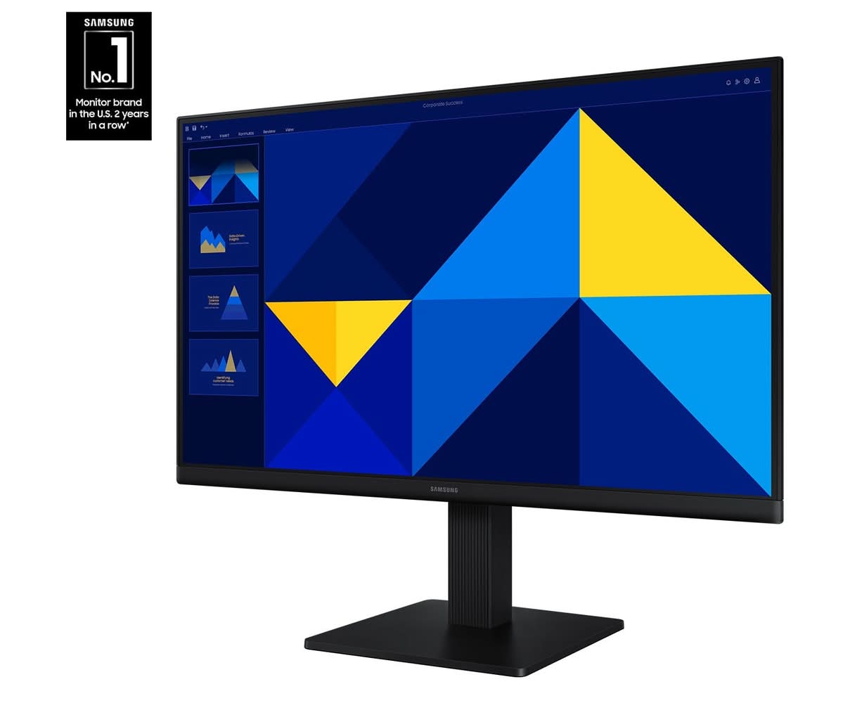 Samsung’s 24" S3 Monitor enables smooth performance, heightened productivity, and greater comfort. The IPS Panel delivers a stunning color experience across the entire display with less color washing, offering clarity from any viewpoint so tones stay consistent and accurate. The 100Hz refresh rate reduces lag and motion blur while playing games, watching videos, or working. Game Picture Mode with optimizable game settings enables instant adjustment of color and image contrast. Eye Saver Mode protects vision, reduces blue light and screen flicker, and extends comfort even during long sessions. The ergonomic super-slim design is a stylish addition to any environment, while ultra-thin border bezels make the most of screen space. Multiple connectivity enables devices to be plugged straight into the monitor for increased flexibility. Color: Black