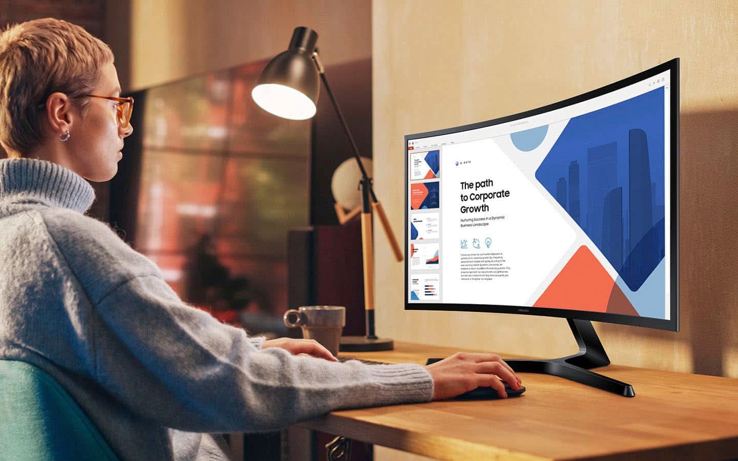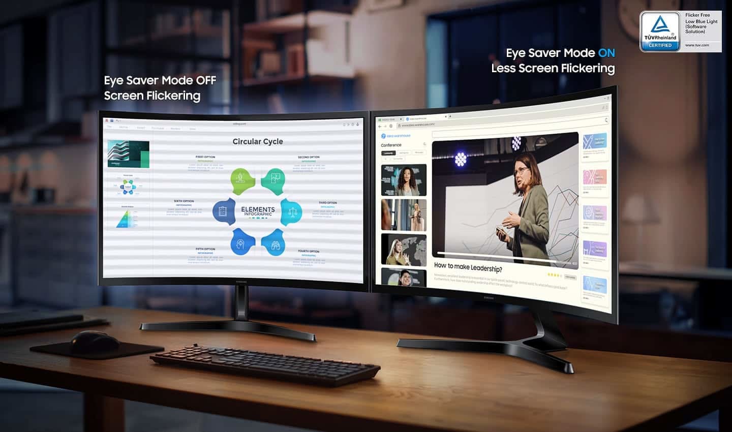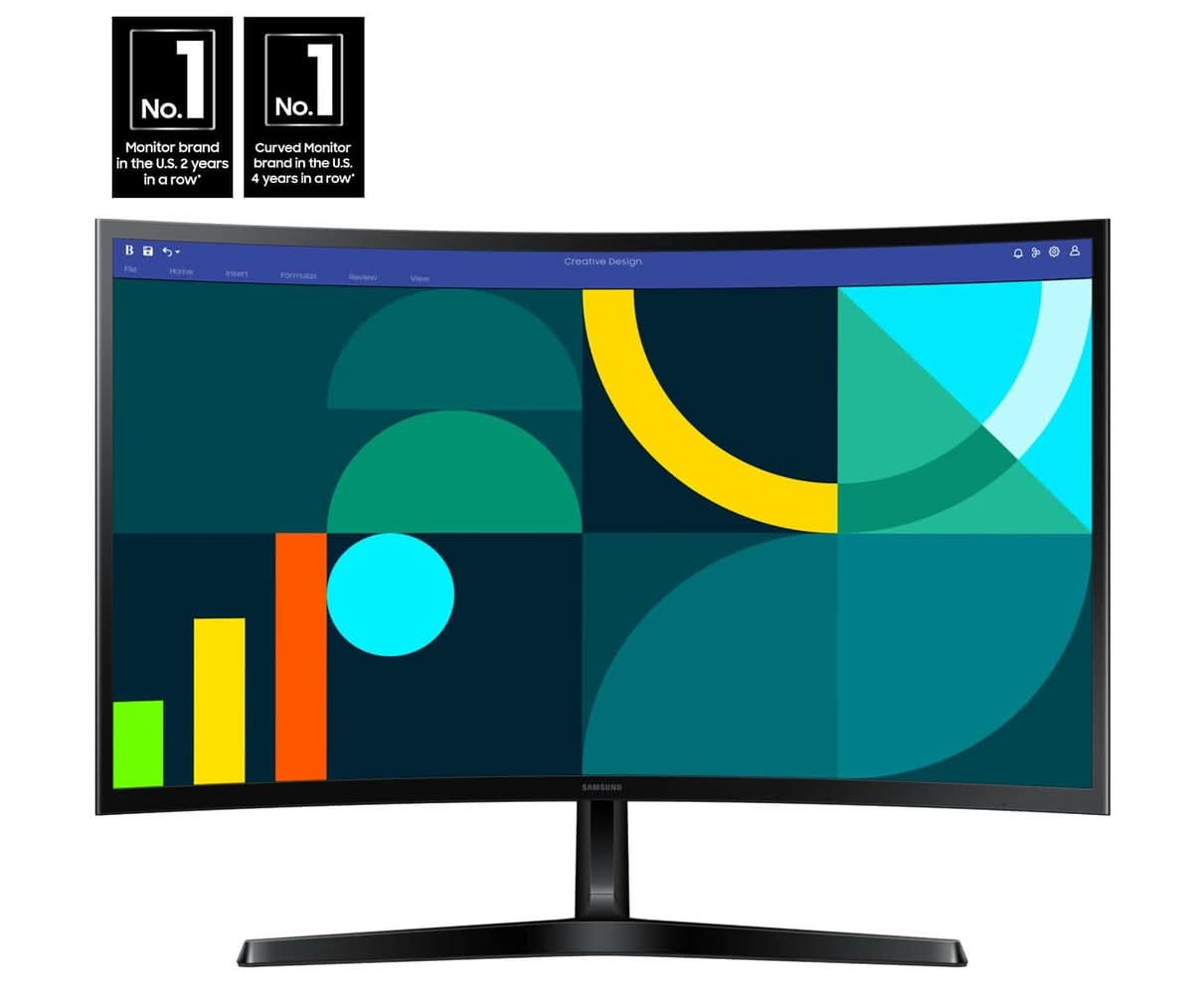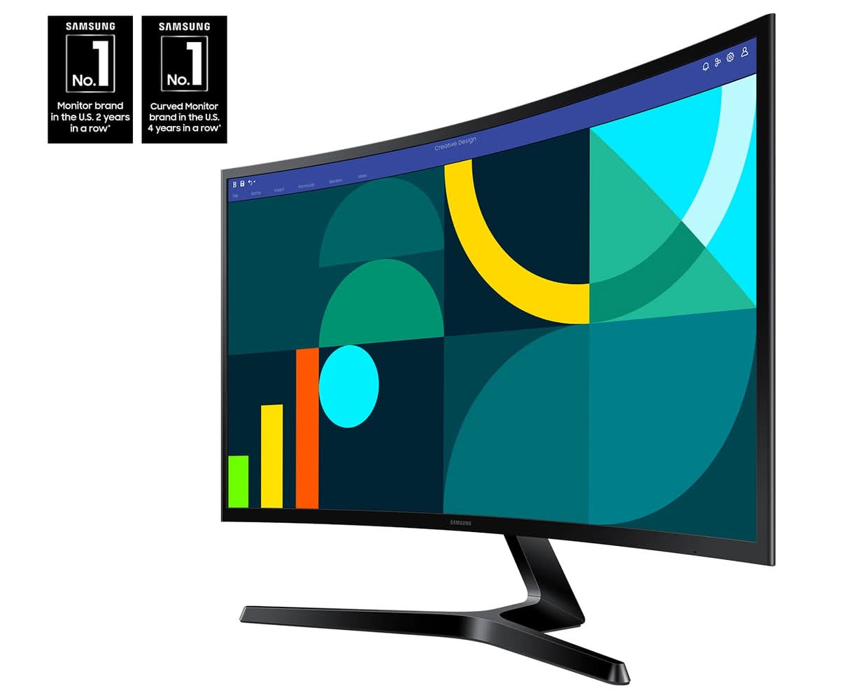 Samsung's 27" Essential S3 Curved Monitor creates an immersive viewing experience for your everyday use. The 1800R curved screen wraps more closely around the field of vision for a wider view which enhances depth perception and minimizes peripheral distractions. The 100Hz refresh rate reduces lag and motion blur to stay in the action when playing games, watching videos, or working on creative projects. Game Mode offers instant adjustment of color and image contrast, filling the screen with a clear view of every detail. Advanced eye comfort technology certified by TÜV reduces eye strain by minimizing blue light and decreasing irritating screen flicker. HDMI and D-sub enable devices to be plugged straight into the monitor for greater connectivity and convenience. Color: Black