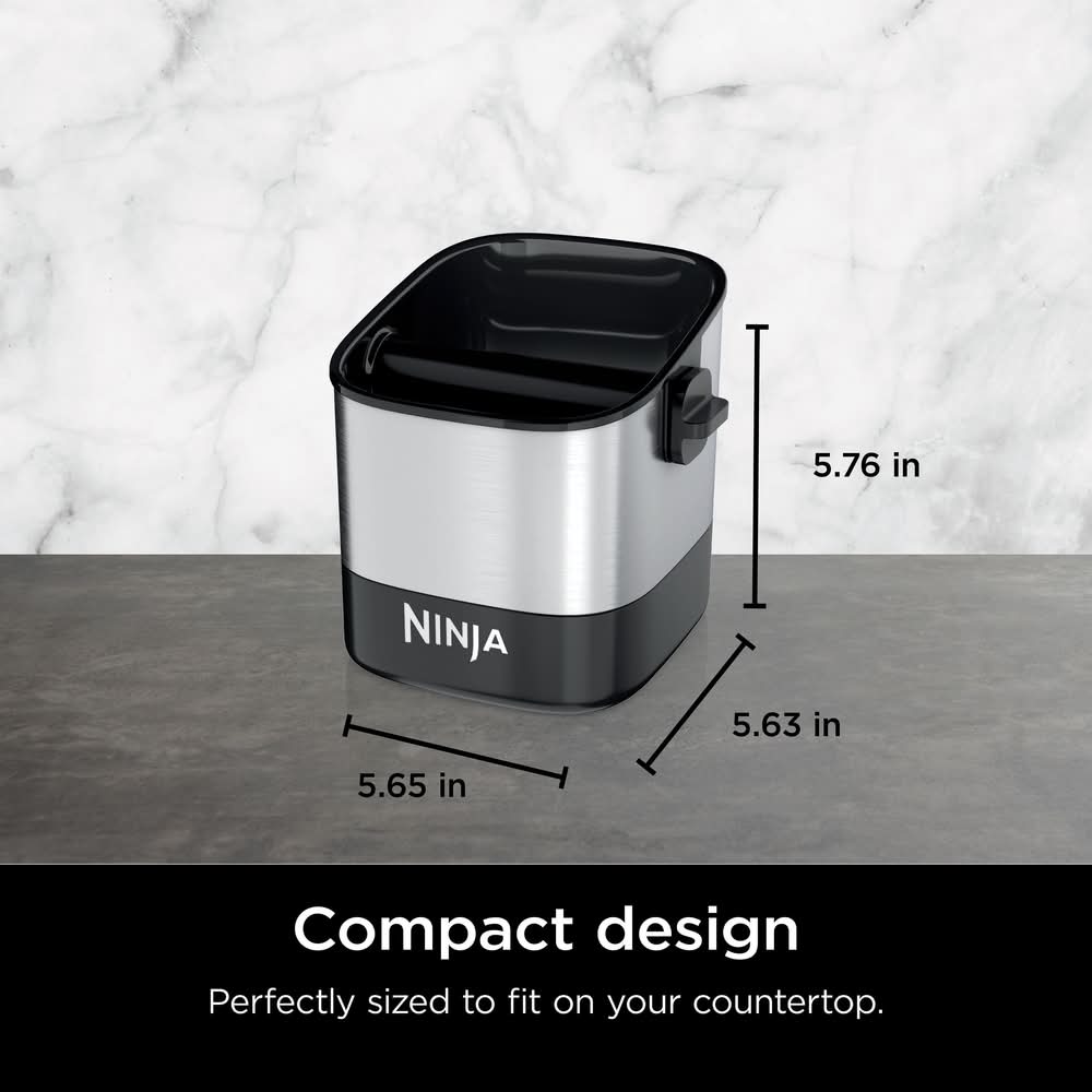 Ninja - Luxe Café Knock Box, Accessories for Espresso Machine, Non-slip Base, Holds 10 Double Shot Pucks - Silver