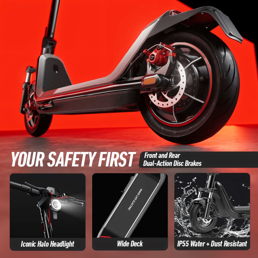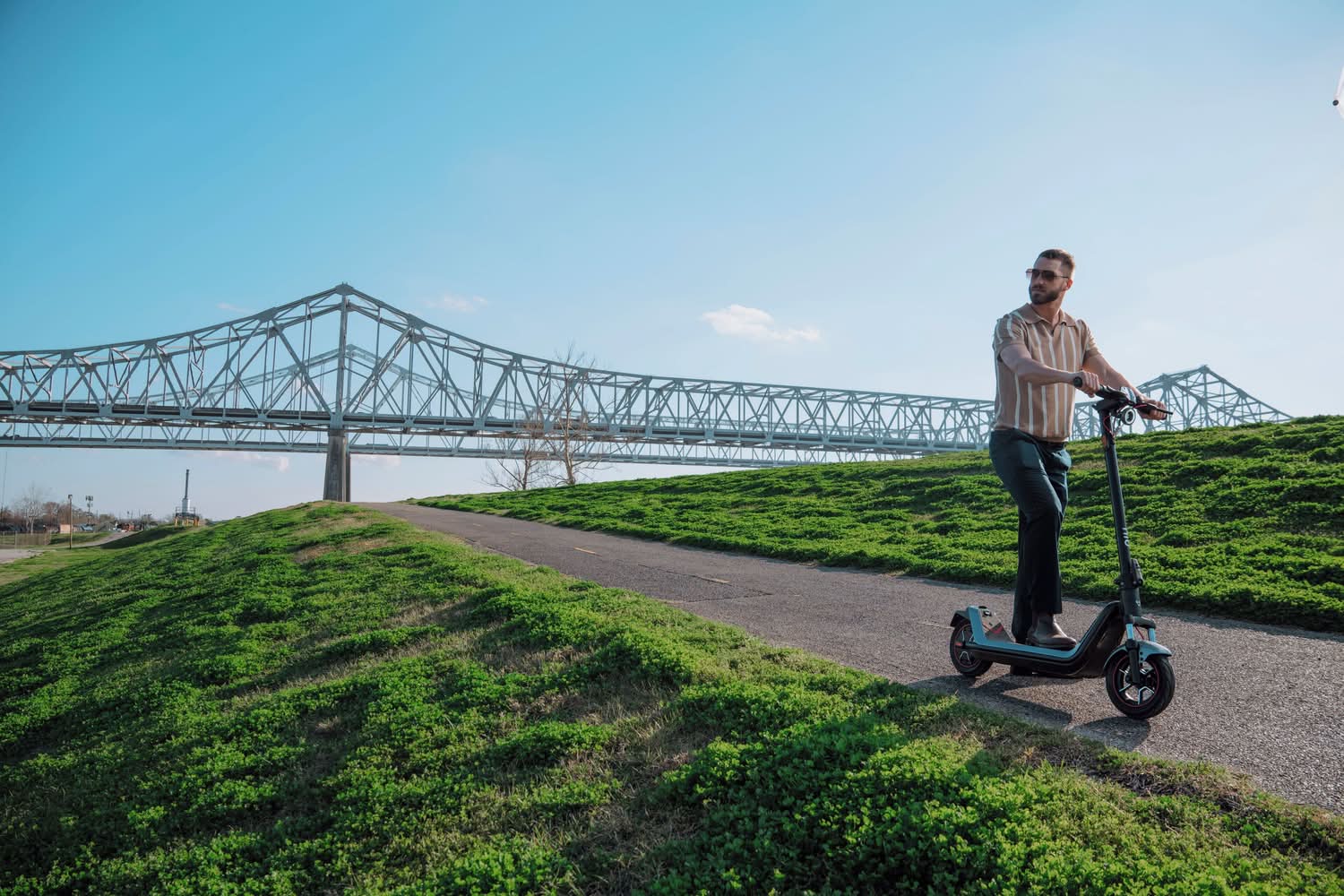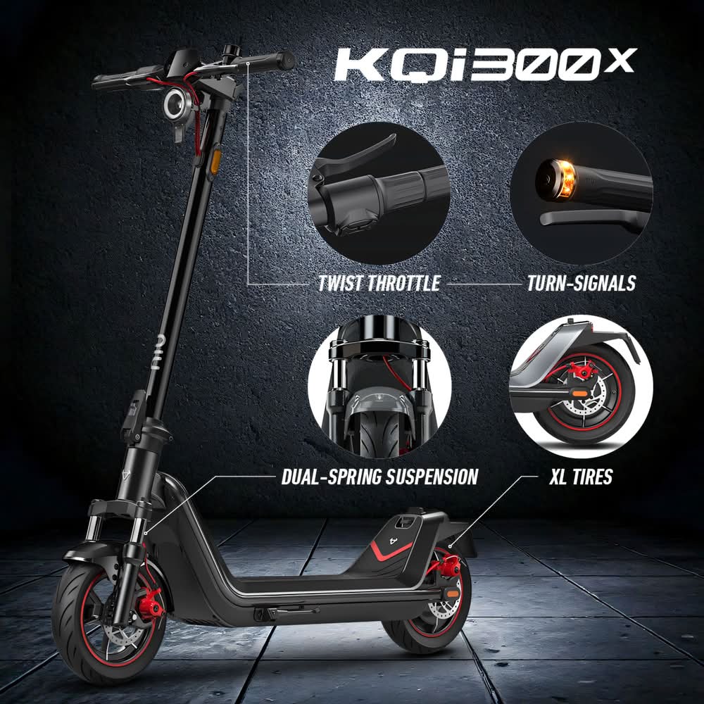 Don't let rough roads limit your ride. KQi 300X features an all-new, dual-tube hydraulic suspension that lets you glide over any uneven surface with ease. Travel further with up to 40mi of range on a single charge, and reach speeds of up to 24mph. Experience maximum performance and take on any road with the KQi 300 series. Color: Space gray