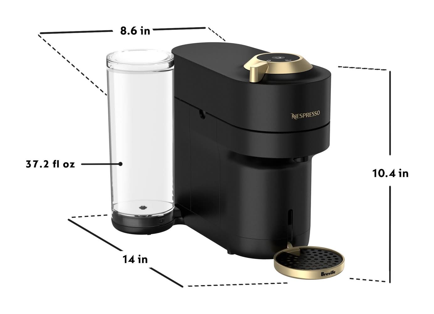 Bursting in a range of vibrant colors, Vertuo Pop+ coffee maker and espresso machine makes a bold statement to match your style. With five cup sizes, from Espresso to Alto and Cold Brew style coffee, simply choose your Vertuo pod, pop it in, and you’re away at the touch of a button. To keep you spinning, the machine reads the code on each pod to reveal its hidden treasures, from aroma to crema. The Vertuo Pop+ has a water tank accessible from the side, all in a compact design. Color: Matte black
