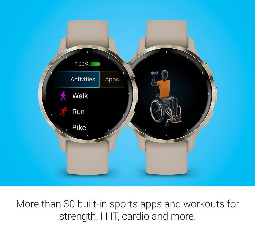 Know the real you with the Venu 3S smartwatch, the ultimate on-wrist coach designed to support your goals — whatever they may be. Featuring a bright, colorful display and up to 10 days of battery life, this smaller-sized GPS smartwatch is purpose-built with advanced health and fitness features to help you better understand your body. Body Battery energy monitoring helps you keep your energy levels in check with personalized insights based on sleep, naps, stress, workouts and more. Improve the quality of your sleep with personalized sleep coaching and nap detection plus even more details such as HRV status (data presented is intended to be a close estimation of metrics tracked). During the day, switch up your activities with animated workouts and more than 30 built-in sports apps — including for active wheelchair users — plus advanced training features to keep you going strong. With its built-in speaker and microphone, the Venu 3S smartwatch makes it easy to make and take calls right from your wrist when paired to your smartphone — and even reply to texts by using your phone’s voice assistant. Plus, enjoy connectivity features such as music storage, Garmin Pay contactless payments (with a supported country and payment network) and more. Color: Stainless steel and french gray