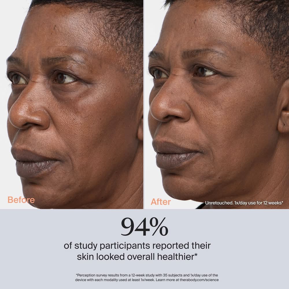 TheraFace PRO is an FDA cleared all-in-one skincare device with 8 facial treatments clinically proven to lift, firm, reduce fine lines and wrinkles, improve skin texture, and enhance radiance for healthier-looking skin in 12 weeks*. Interchangeable snap-on rings allow you to easily change your treatment and create seamless, personalized routines to give your skin what it needs that day, including microcurrent, red, blue and red + infrared LED light, cleansing, facial massage, and hot and cold rings (sold separately). TheraFace PRO makes it easier than ever to achieve your skincare goals with simple, esthetician-designed routines and expert-led tutorials in the Therabody app. Save time and counter space with one compact, portable device you’ll want to take everywhere. Color: White