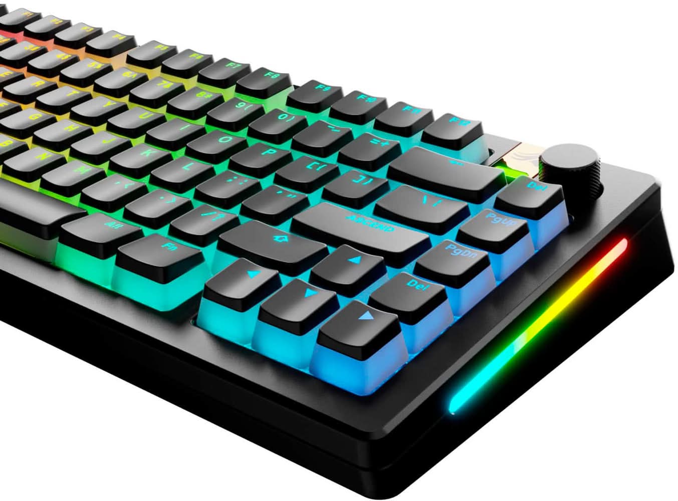 Aura Pudding-style keycaps deliver translucent sides and legends create a unique glow effect using your keyboard's RGB backlighting. Glorious keycaps are universally compatible with most mechanical keyboards carrying MX-style switches with standard bottom rows, and fit keyboard sizes ranging from compact and tenkeyless (TKL) to full size. Glorious keycaps are a great way to personalize any mechanical keyboard, even if you don't own a Glorious keyboard. Made from premium doubleshot PBT polymer and available in Black or White. 131 keys included. Keyboard Not Included. Color: Black