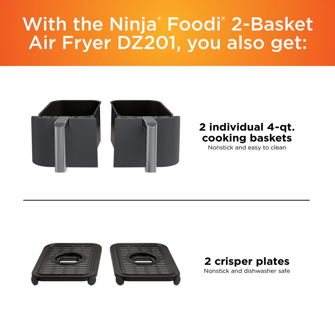 The Ninja Foodi 6-in-1 8-qt. 2-Basket Air Fryer with DualZone Technology. The first air fryer with 2 independent baskets that let you cook 2 foods at once, not back-to-back like a traditional single-basket air fryer. With 6-in-1 versatility, you can Air Fry, Air Broil, Roast, Bake, Reheat or Dehydrate in each 4-qt zone for quick family meals. XL 8-qt capacity lets you cook mains and sides at the time, and now with Smart Finish Technology you can sync the settings from each zone so both foods cook accurately and finish together. Color: Dark gray