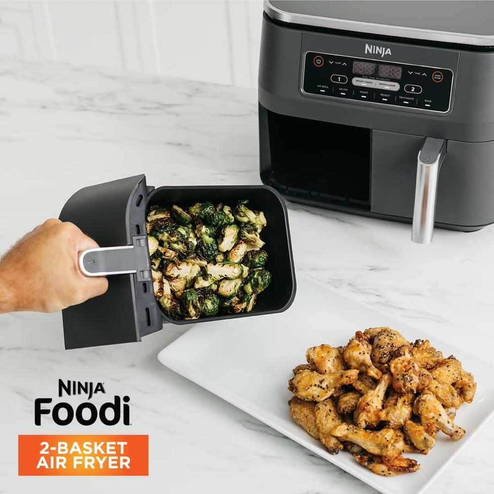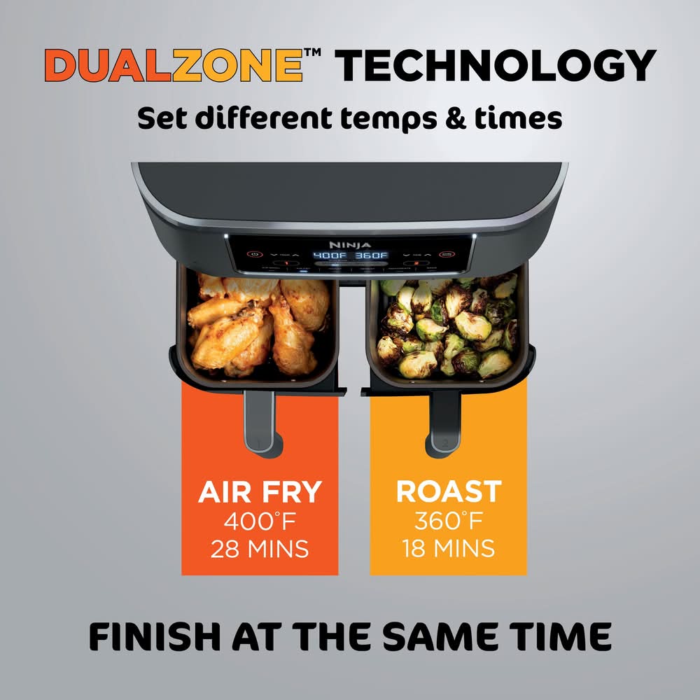 Ninja - Foodi 6-in-1 8-qt. 2-Basket Air Fryer with DualZone Technology & Air Fry, Roast, Broil, Bake, Reheat & Dehydrate - Dark Gray