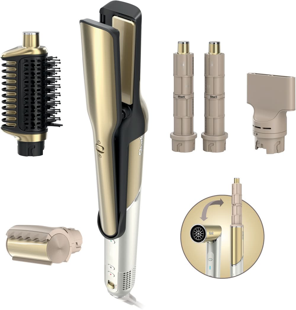 Shark - Glam™ Ceramic & Powerful Air Styling & Hair Dryer System, for curling, air straightening & glossing + FrizzFighter - Gold