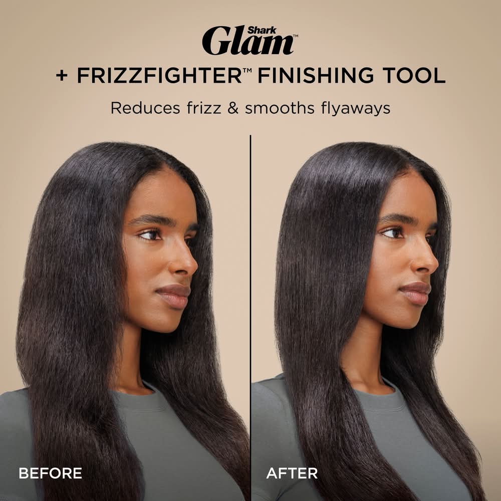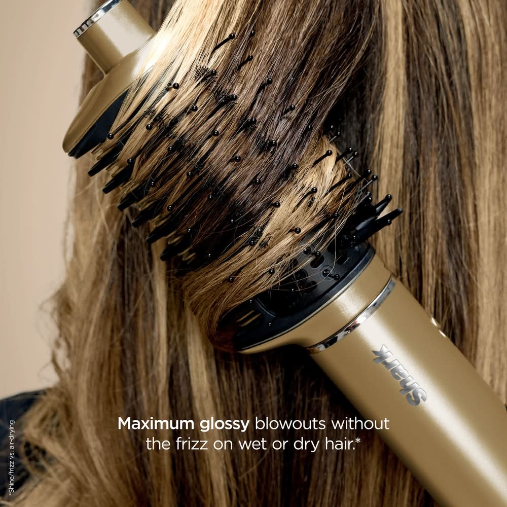 Meet the Shark Glam Hot Tool Air Styling & Drying System. Innovative heat-controlled ceramic and powerful airflow unlock smooth silky finishes, glossy blowouts and ultra high-shine end styles without heat damage in wet to dry mode. Shark Glam Styler Suite includes Shark Silki straightener for wet-to-straight styling in as little as one pass*, and the Shark Glossi styler for ultra-fast, bouncy blowouts with maximum gloss.** *using wet mode on wavy hair in lab settings **shine/frizz vs. air drying Color: Gold