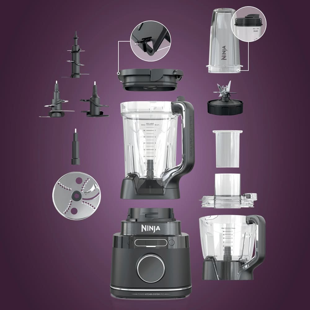 The Ninja Detect Power Kitchen System with BlendSense Technology allows you to blend smoothies, chop, slice, and shred veggies all with one system. You only need to toss in ingredients, press the dial, and watch them transform into a perfect output from smoothies to salsa and much more. The kitchen system that actively detects and adjusts speed and time to deliver perfect results. Color: Black