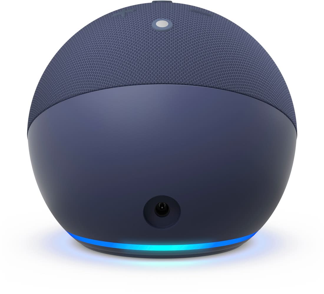 Smart speaker features a sleek design and improved audio for vibrant sound anywhere in your home. With Echo Dot, you can stay on track with help from Alexa, control compatible smart home devices and start routines with your motion. Make your Echo Dot portable with the Echo Dot Battery Base and enjoy your music away from the power outlet with integrated battery lasting up to 5 hours (battery base sold separately). The battery base is available in black and white. Color: Deep sea blue