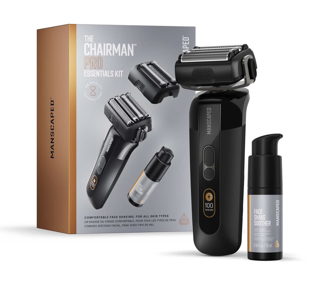 Manscaped - The Chairman Pro Essentials Kit Rechargeable Wet/Dry Electric Foil Face Shaver and SkinSafe Stubble Trimmer - Black