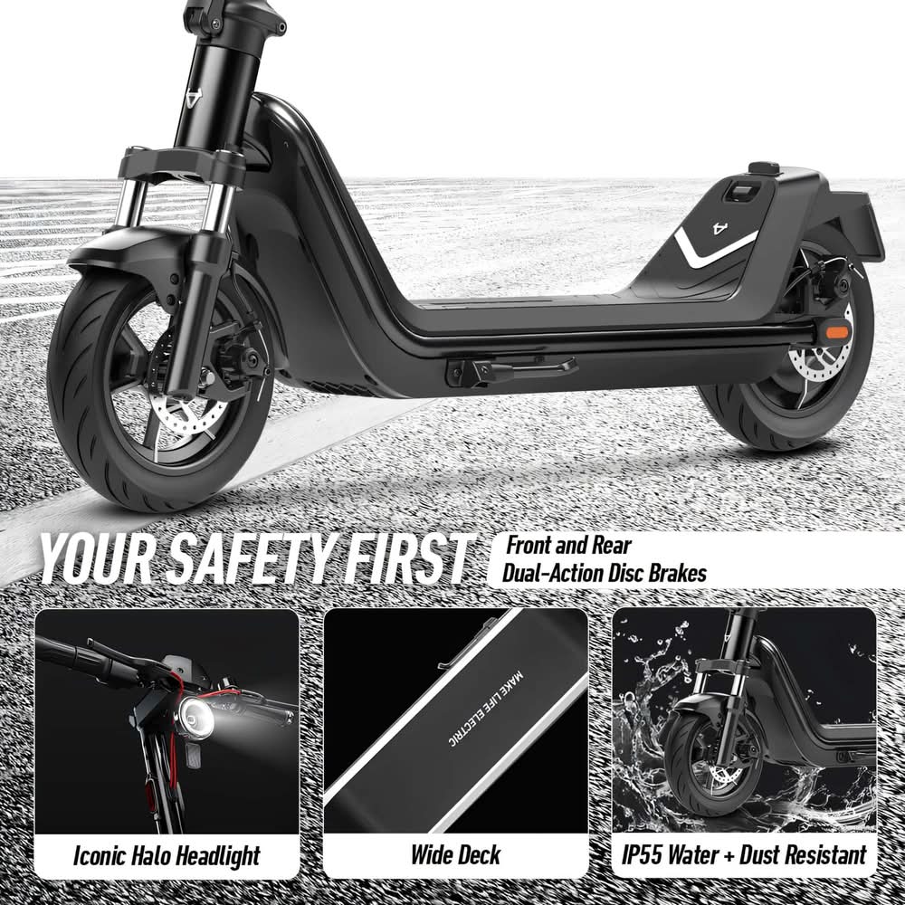 Don't let rough roads limit your ride. KQi 300P features an all-new, dual-tube hydraulic suspension that lets you glide over any uneven surface with ease. Travel further with up to 30mi of range on a single charge, and reach speeds of up to 20mph. Experience maximum performance and take on any road with the KQi 300 series. Color: Black