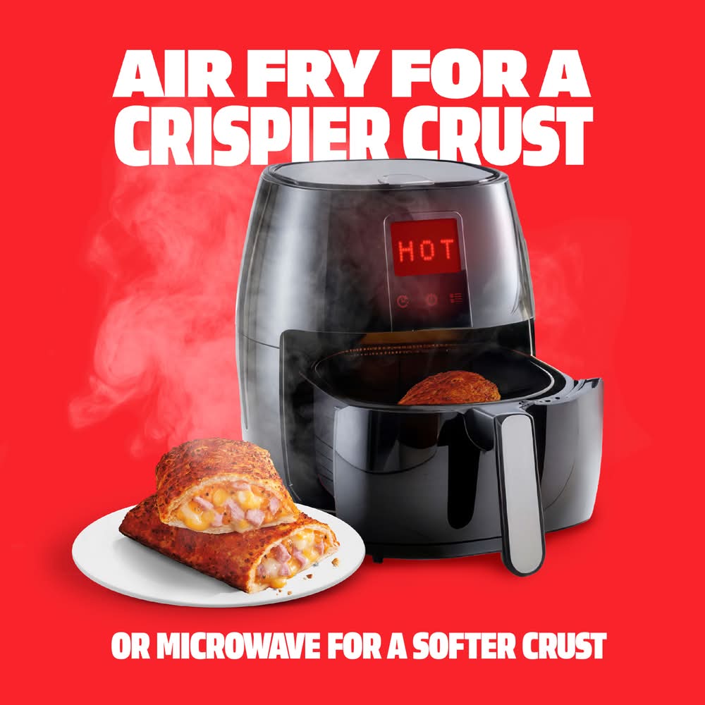 Directions for use: Cook this microwave food for 1 minute, 30 seconds on high for a quick on-the-go snack, or air fry at 360 degrees Fahrenheit for 11 minutes if you want a crispier crust. Storage recommendation: Keep your Ham and Cheese sandwich frozen until ready to cook and eat.