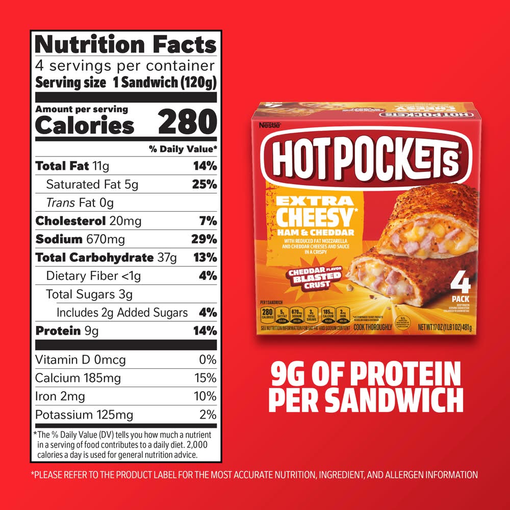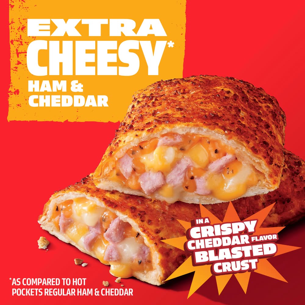 Hot Pockets Extra Cheesy Blasted Crust Frozen Sandwich, Ham-Cheddar (17 oz, 4 ct)