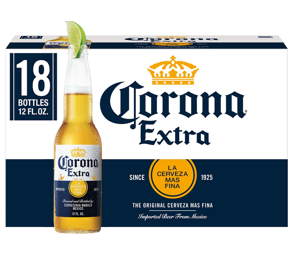 Corona Extra Mexican Lager Beer is an even-keeled cerveza with fruity-honey aromas and a touch of malt. This beer is a great tailgating beer, beach drink, or barbecue beverage. • Brand: Corona • Pack size: 18 • Alcohol by volume: 4.59%