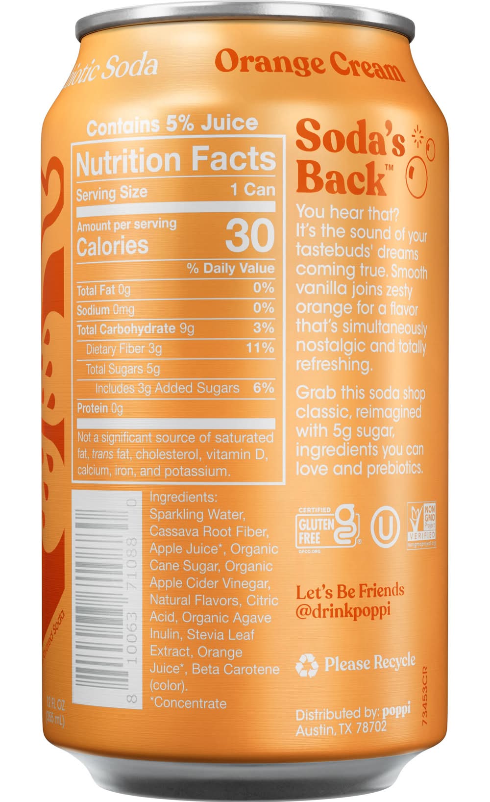 Poppi enables the freedom to love soda again with feel-good flavor, making it “the smarter sip”. Modernizing soda for the Next Generation! Color: Orange cream