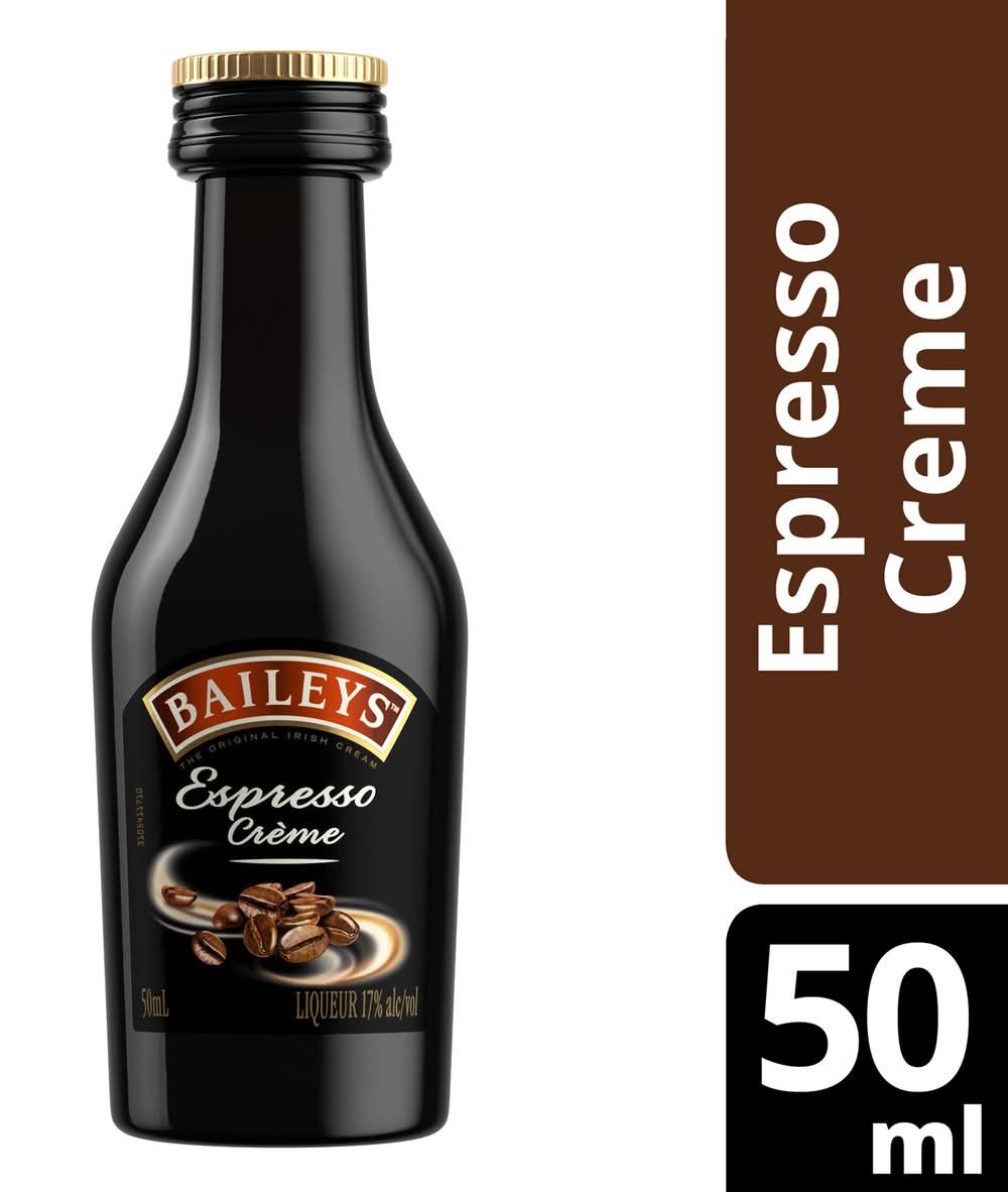 Craving a coffee and chocolate escape? Look no further than Baileys Espresso Créme Irish Cream Liqueur. This decadent coffee flavored Irish Cream liqueur blends real Colombian coffee with the creamy indulgence of Baileys Original for a bold and delicious experience. Enjoy it neat for a luxurious after-dinner drink, or elevate your coffee or dessert. It's also the perfect base for irresistible coffee cocktails like the classic Espresso Martini. Packed with flavor and versatility, Baileys Espresso Créme is a coffee lover's dream and the ideal gift for any occasion. Includes one 34 proof 50 mL bottle of Espresso Crème Irish Cream Liqueur. Please drink responsibly. Alcohol by volume: 17%