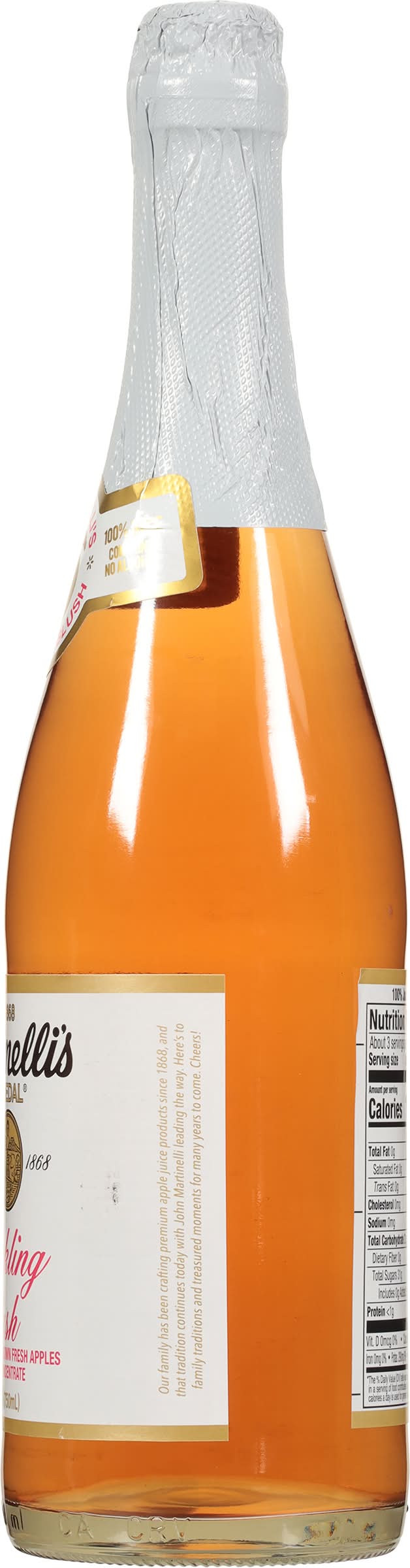 Sophisticated and refreshing, this 100% juice non-alcoholic Sparkling Blush is made from U.S. grown fresh apples with a hint of raspberry juice that's perfect for year-round occasions. • Brand: Martinelli's • Flavor: Apple & cherry • kosher • S. Martinelli & Company, Watsonville,CA,95076
