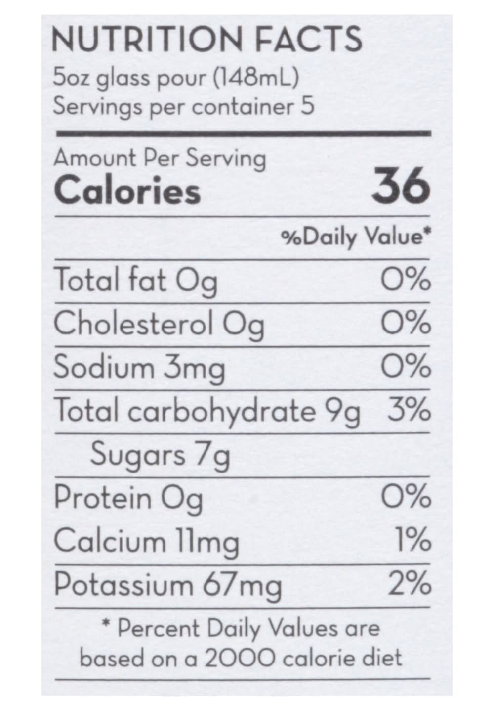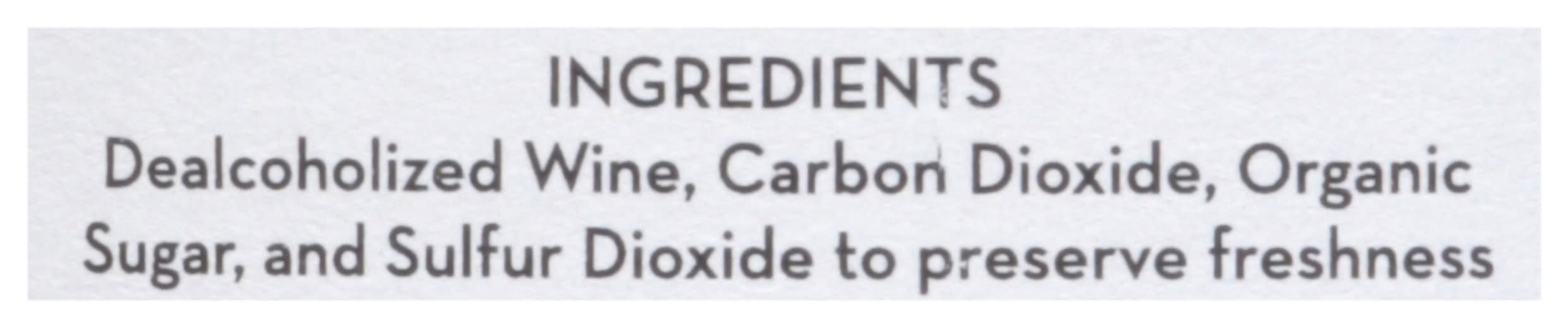 Ingredients: Dealcoholized Wine, Carbon Dioxide, Organic Sugar, and Sulfur Dioxide to Preserve Freshness