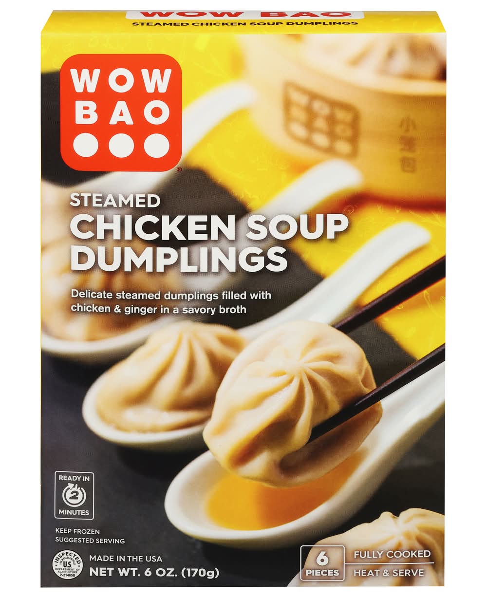 Wow Bao’s Chicken Soup Dumplings are delicate steamed dumplings filled with chicken and ginger in a savory broth. Meant to be enjoyed in one bite, this traditional Chinese dim sum can be served as an appetizer, snack, or meal. Wow Bao has been steaming delicious fluffy bao since 2003 and soup dumplings are one of its new items in a restaurant-quality product line that can be found in the freezer section. Chicken Soup Dumplings are a quick and easy way to enjoy a rich Asian flavor profile that can be enjoyed by simply steaming the frozen dumpling on the stove or heating them in the microwave. Either way, your soup dumplings will be ready in just minutes to feed any need. • Brand: Wow bao • Flavor: Chicken