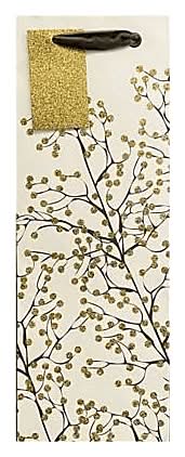 Bag Gold Branches is a bottle gift bag crafted from white kraft material, adorned with gold glitter for an elegant appearance. It also includes ribbon handles for easy carrying. Brand: The gift wrap company