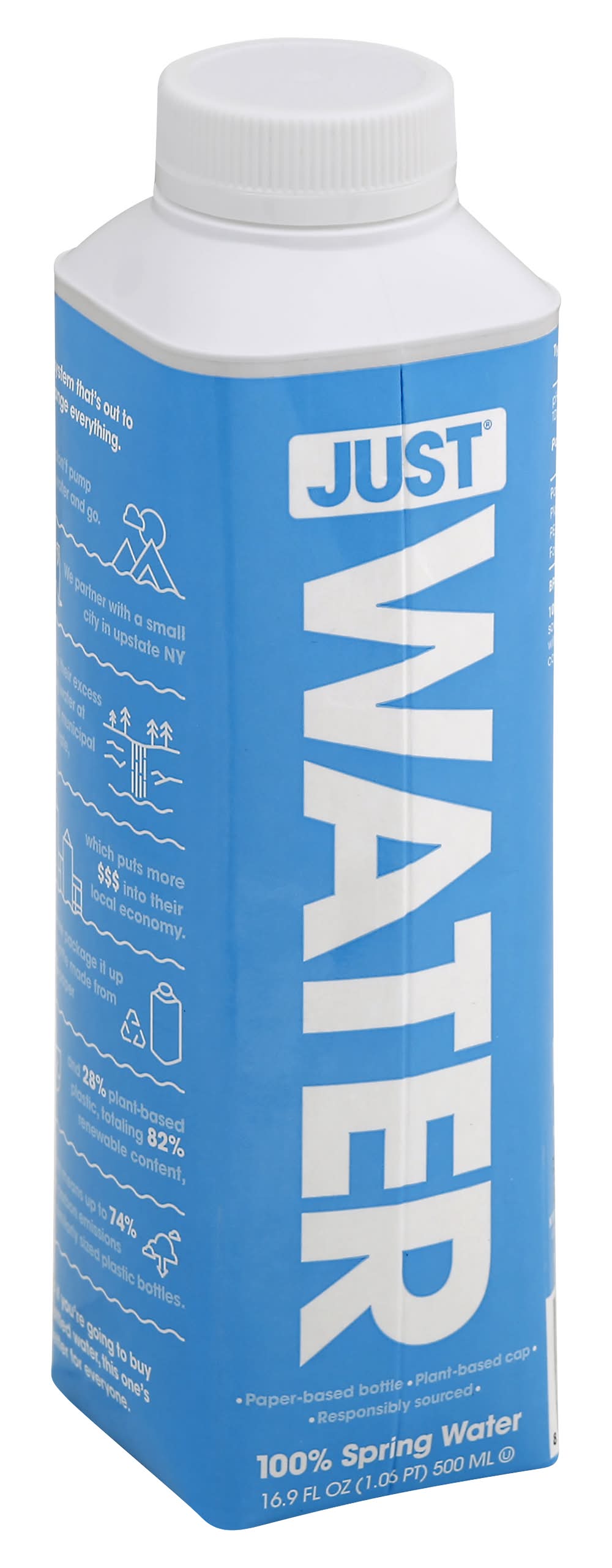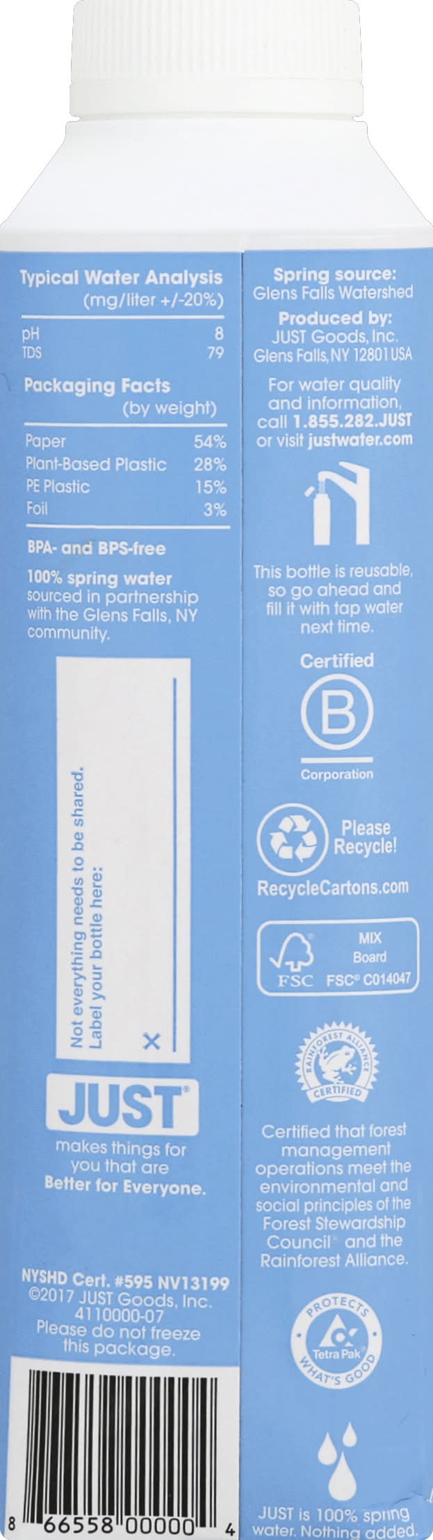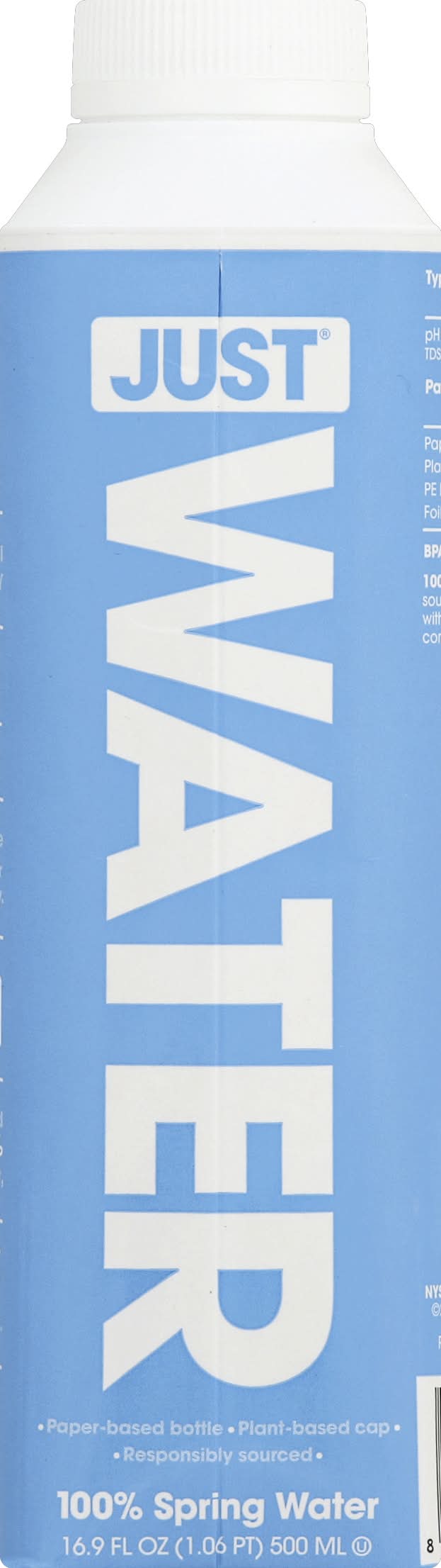 Water, 100% Spring • Brand: Just water • kosher • Packaging: Reusable