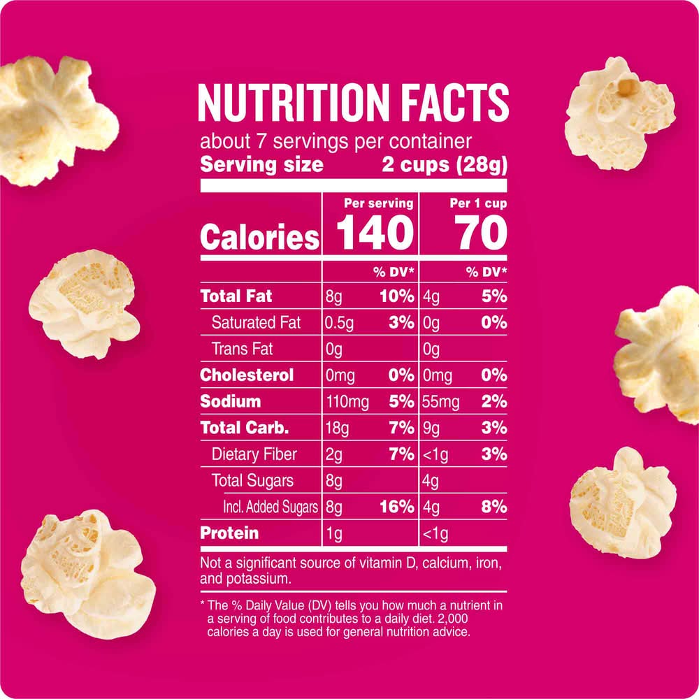 Ingredients: Popcorn, Sunflower Oil, Cane Sugar, Sea Salt. Contains: Corn (Maize)